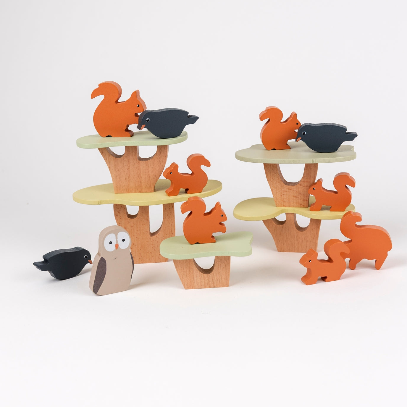 - Wooden squirrels and birds