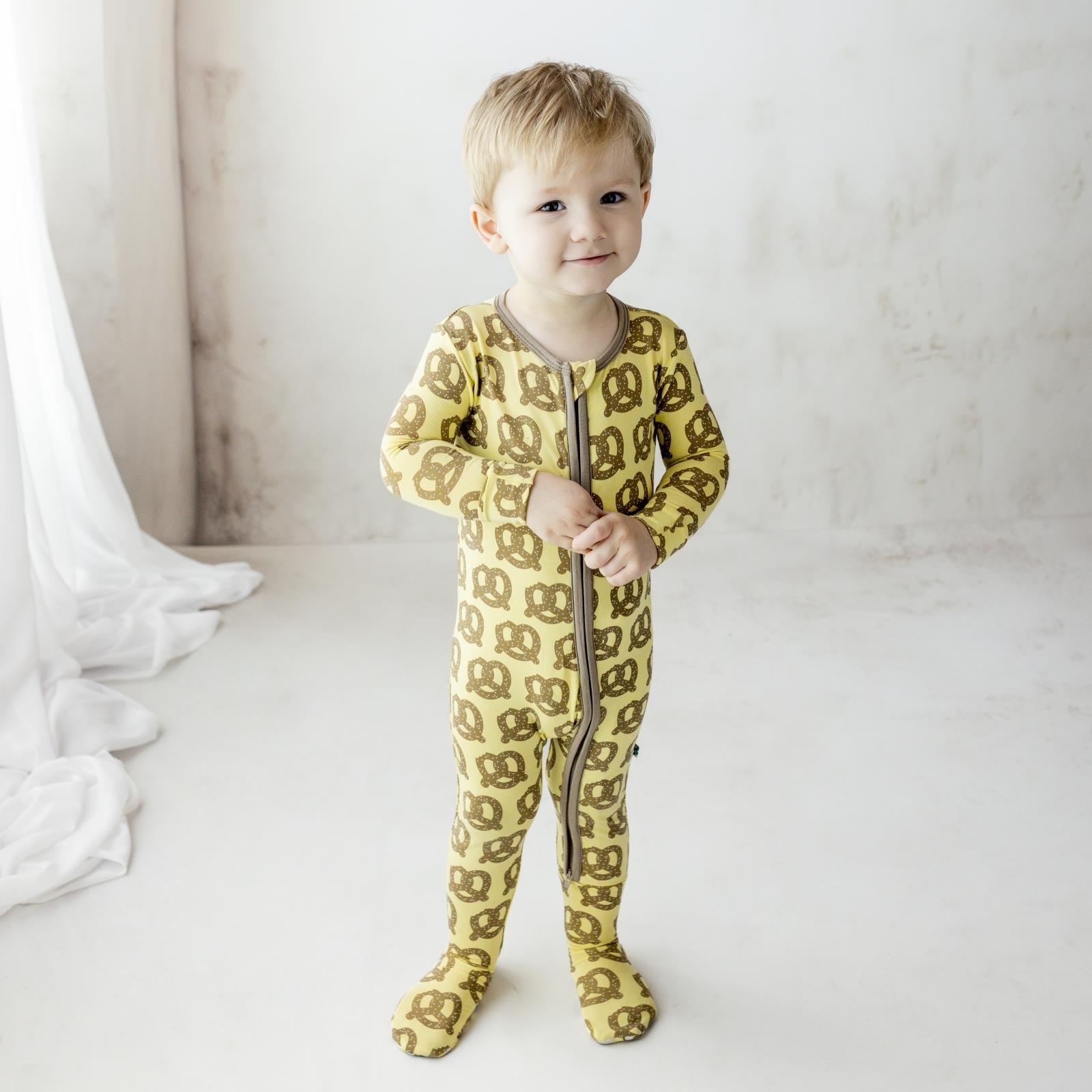 Print Footie with 2 Way Zipper - Flax Giant Pretzel by Kickee Pants
