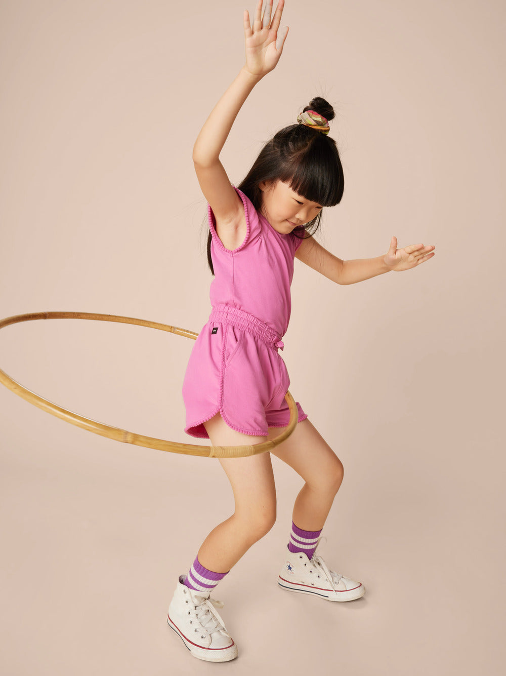 Play-and-party ready, thanks to the pretty pom-pom trim that'll have your little one look all dressed up without even trying. Crafted of soft 100% cotton jersey, these shorts are designed for effortless wear with an elastic waist and functional drawstring. Pair it with an original design from Tea Collection's graphic tee or a matching top, and you have a summer-ready outfit.