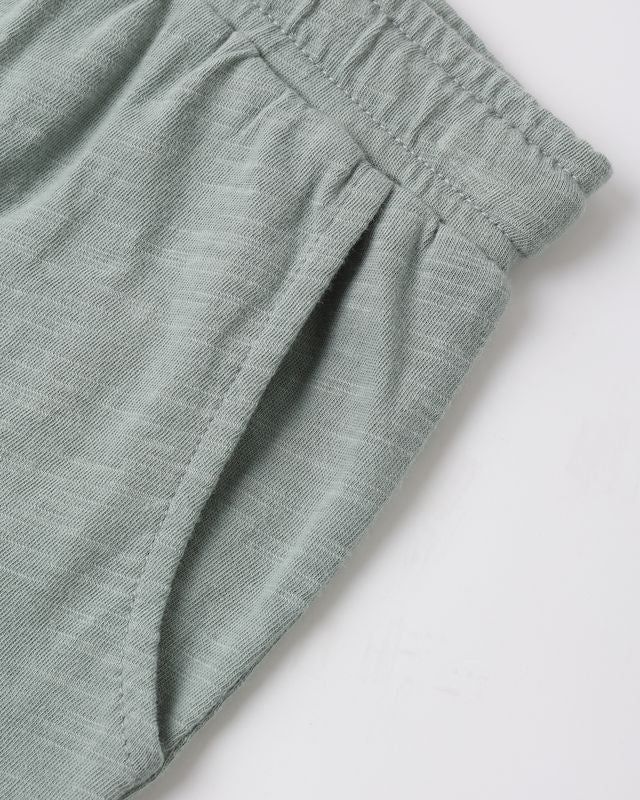 These cozy shorts feature side pockets, elastic waistband with faux drawstring.