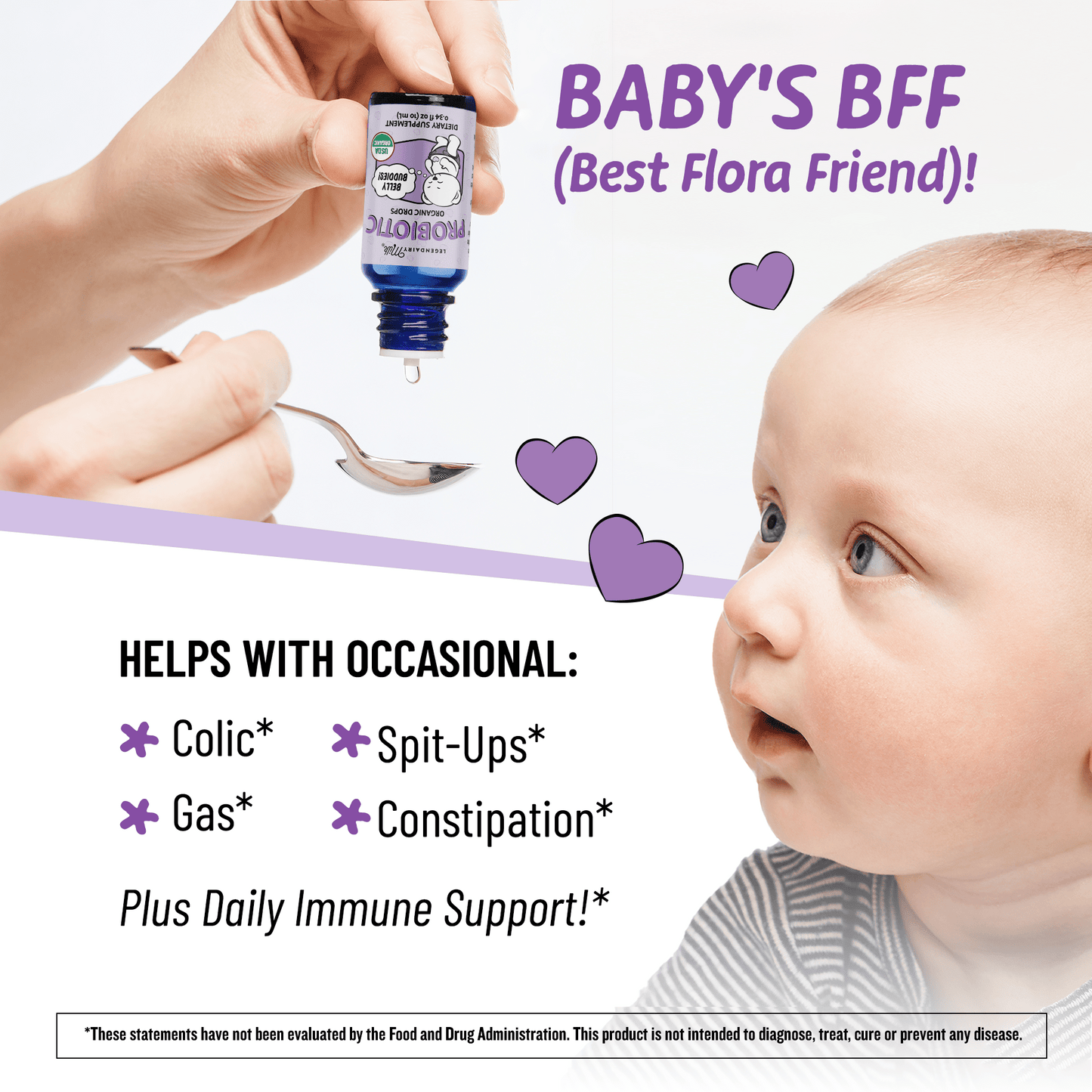 - Thoughtfully designed with baby in mind, our probiotic drops are free from sugar, artificial colors, flavors, and preservatives. They are also USDA Certified Organic, Certified Vegan, Certified Halal, Certified Kosher, and Non-GMO Project Verified! 33 servings per container.