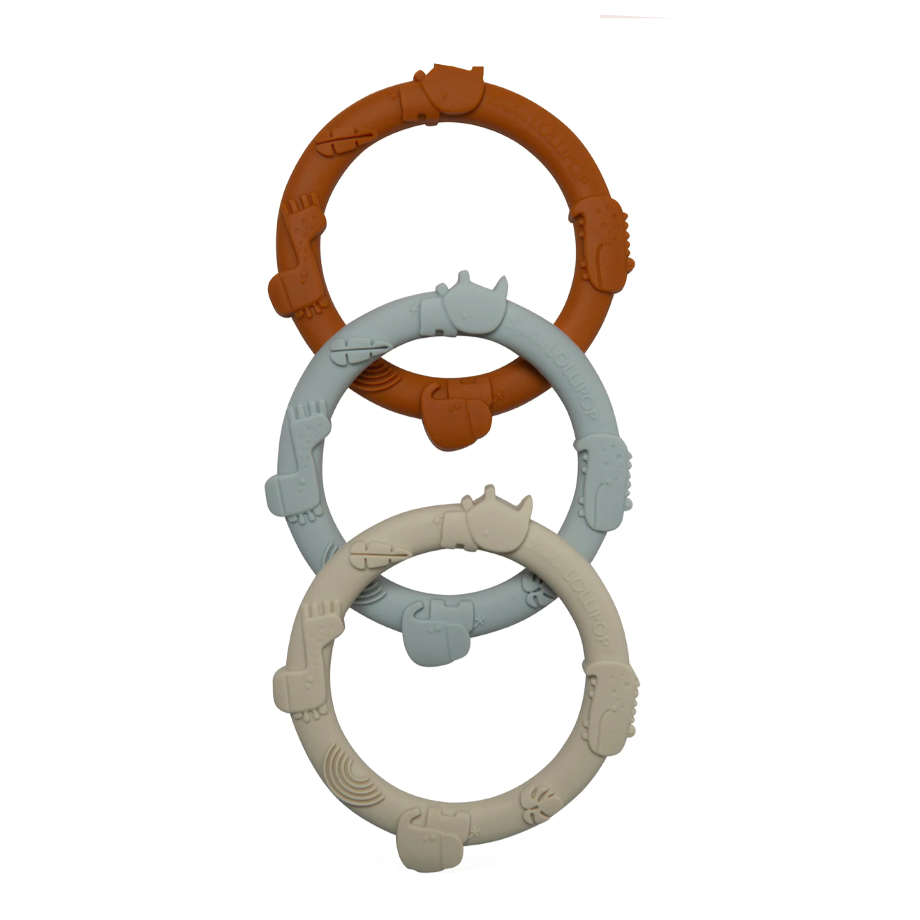 These lightweight teething rings are perfectly sized for little hands to grasp and explore! Made from safe and durable food-grade silicone, they provide endless opportunities for sensory play and discovery. Free of BPA, PVC, phthalates, lead, and cadmium. Comes in a pack of 3 for non-stop fun.