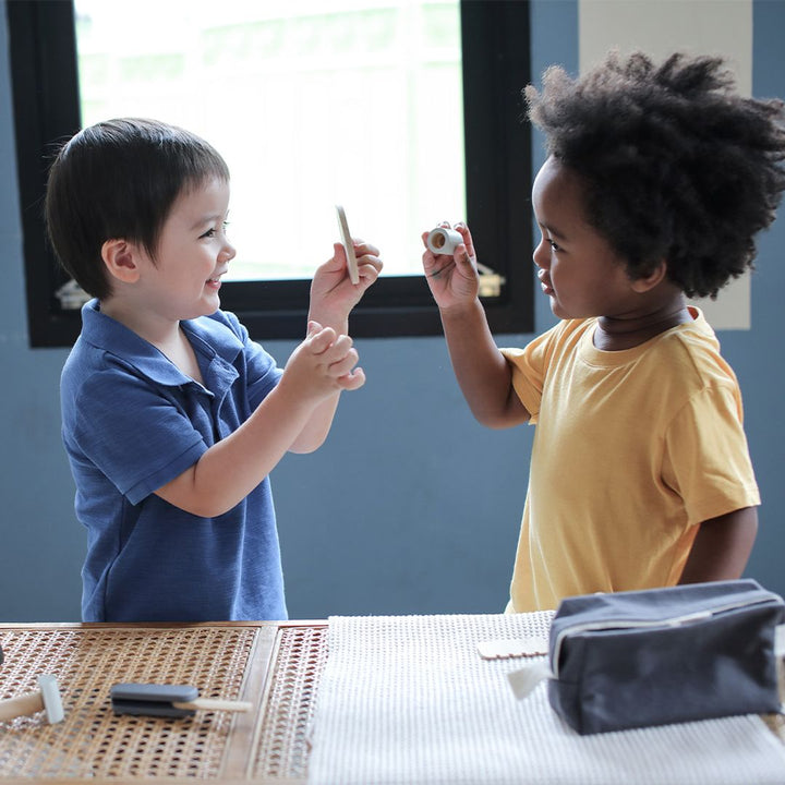 Spice up your morning routine with the PlanToys Shave Set! Complete with a carrying bag, comb, knife, trimmer, product jar and brush, razor, mirror and aftershave bottle, this toy is the perfect addition to any child’s pretend-play collection.