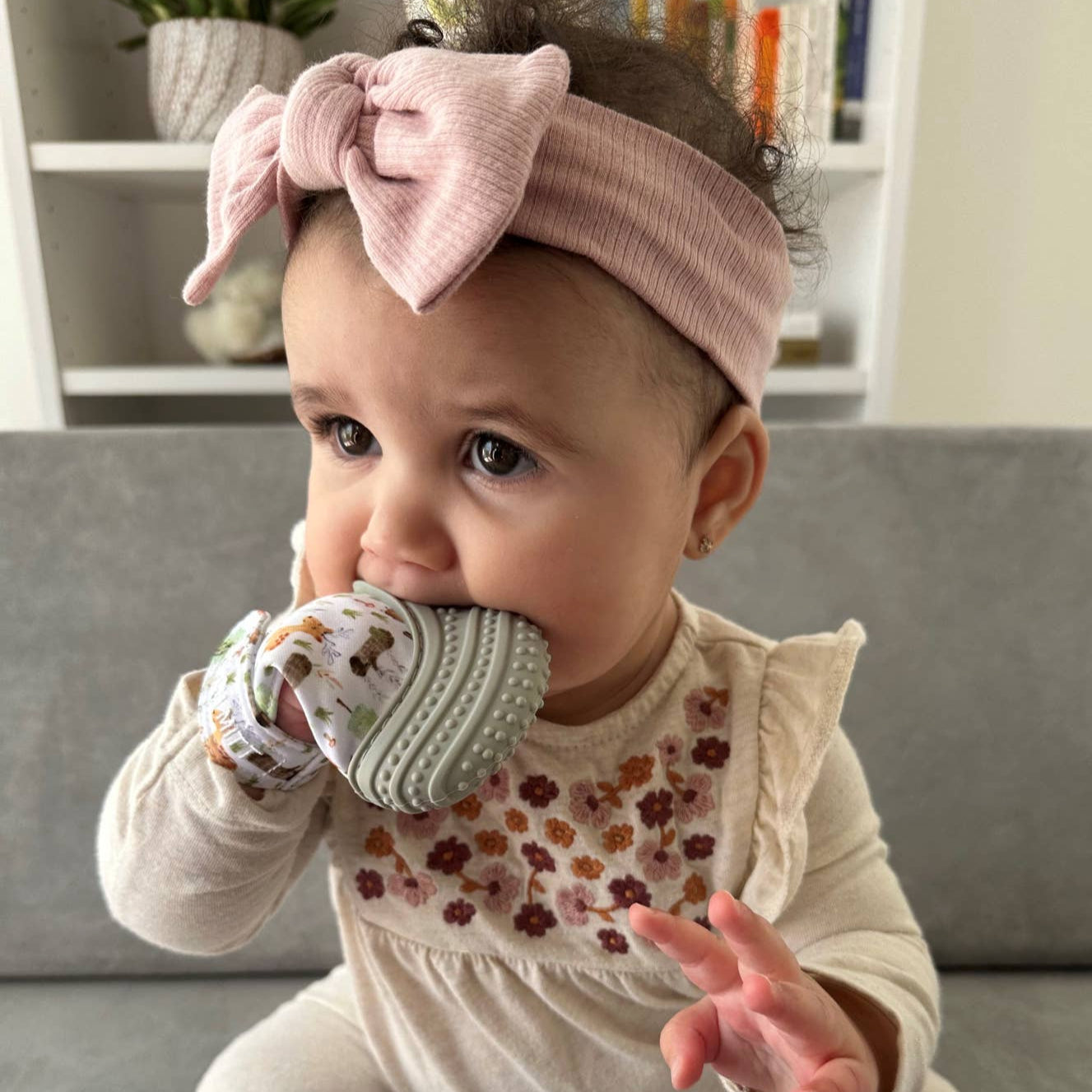 • Stimulating Texture: The mitt features various textured surfaces that massage and soothe your baby's sore gums. It's a multisensory experience that engages your baby and eases the teething process.