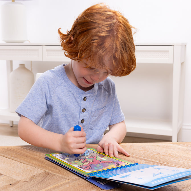 • 4 spiral-bound dinosaur-themed coloring boards and refillable water pen