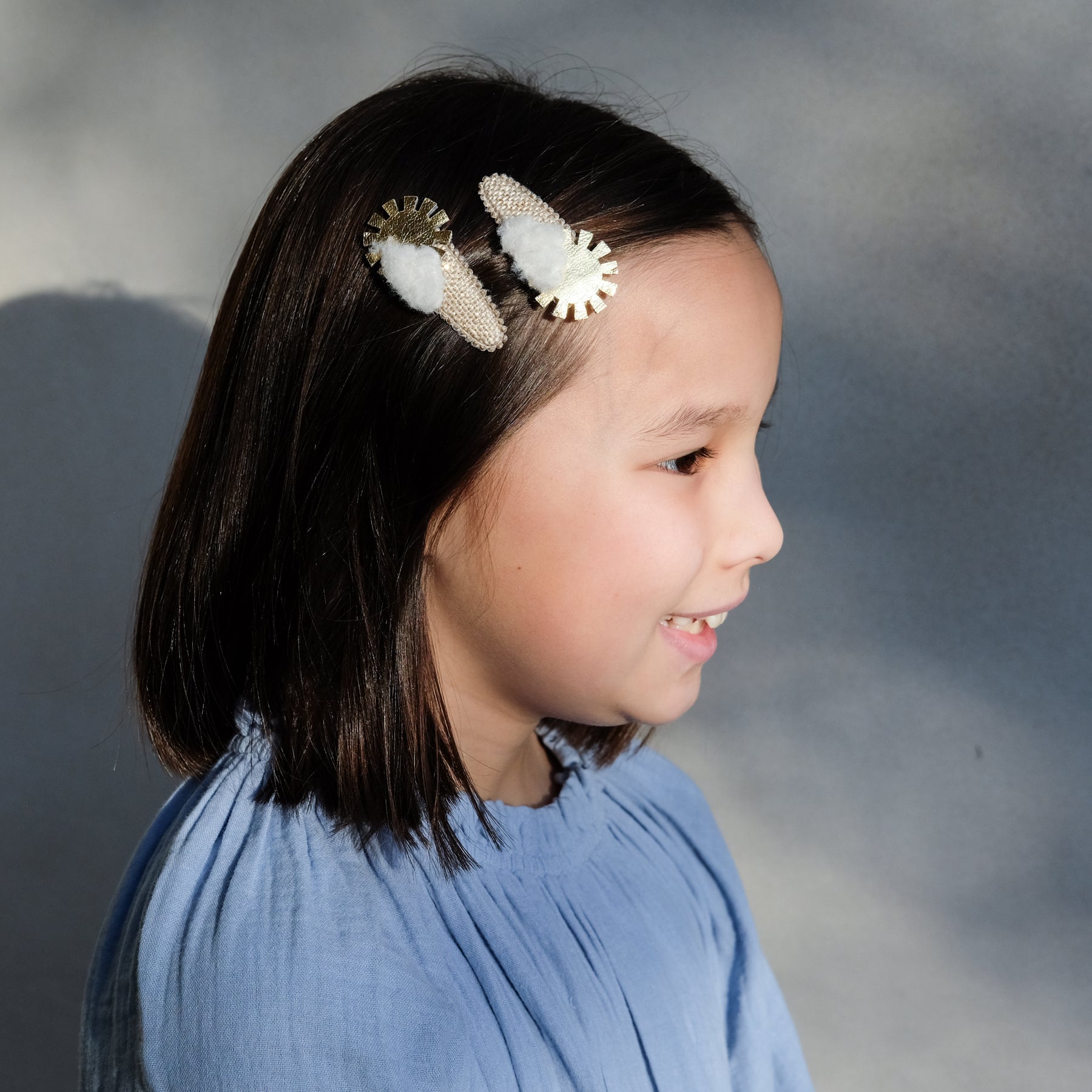 This cheerful little two pack of Sunshine clic clacs is the perfect partner for sunny days, guaranteed to add a ray of fun to any hairstyle!