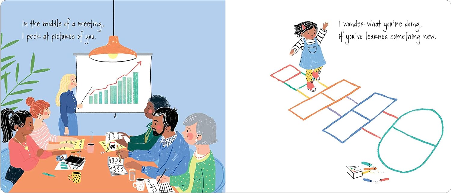 A working mother reassures her child that even when they’re apart, they’re always in each other’s hearts. This lovely board book is perfect for moms to share with their little ones.