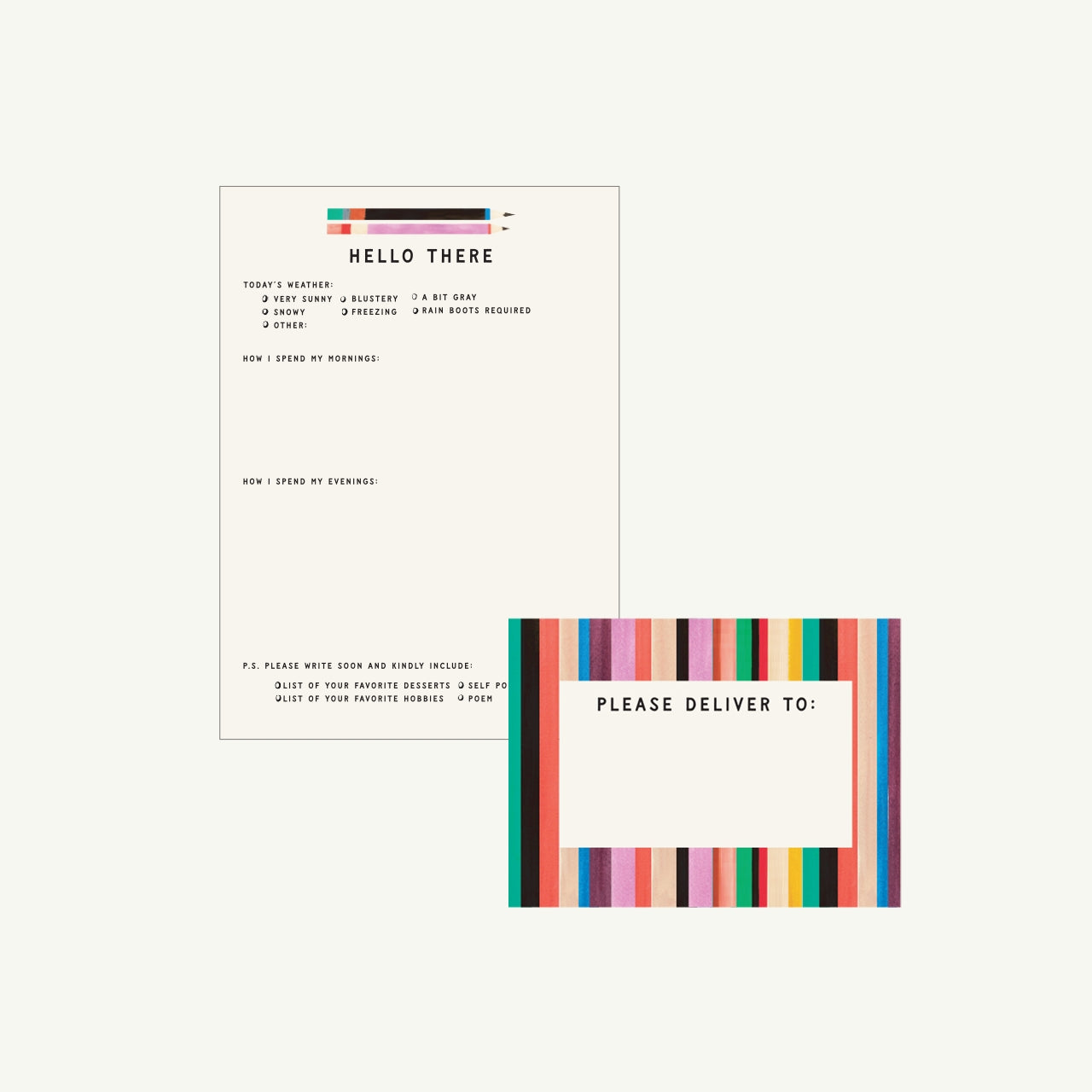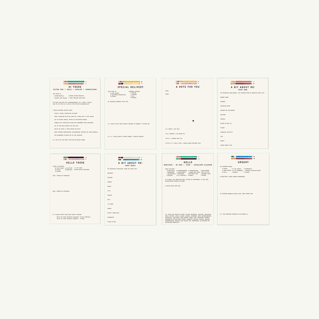 Everything needed to delightfully correspond between generations. Each card comes with clever prompts to make writing a snap. Can be started by either the grandparent or grandchild, simply give one set of cards to the other party.