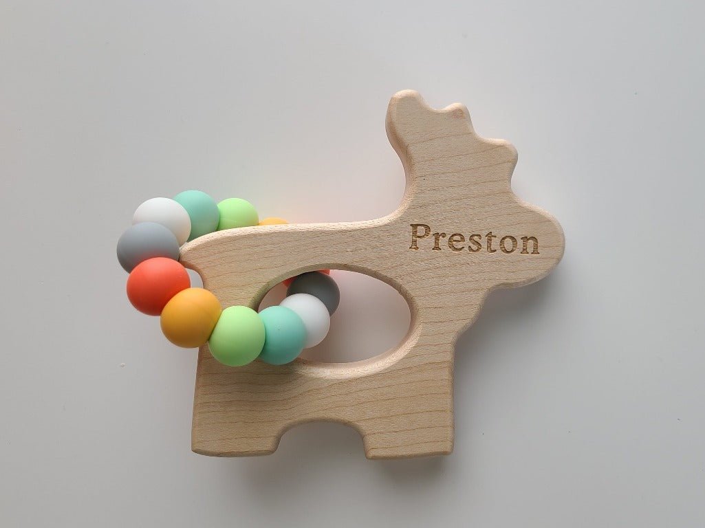 Bannor Toys' Grasping toys are made from American Hardwood Maple, naturally antibacterial, non-splintering. Light weight and perfect for tiny hands to hold, you can also toss them in the fridge or freeze so they are extra soothing on little gums. Food-grade silicone beads are permanently attached to the toy.