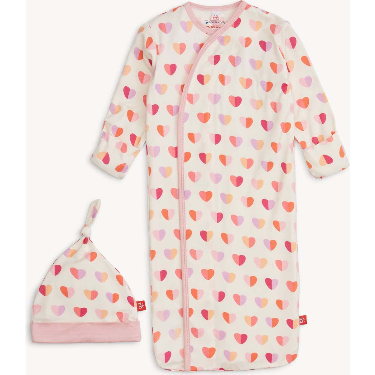 This modal Gown & Hat Set is a newborn, late-night must-have. Magnets take diaper changes to a new level of fuss-free efficiency, while a closed bottom keeps toes and feet warm and cozy—which is mission critical during your third middle-of-the-night change. Other amazing features include the silkiest, softest modal fabric and built-in mitten cuffs.