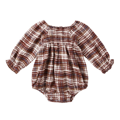 Crafted from soft French terry, this long sleeve bubble romper is as cozy as it is cute, featuring elastic leg openings and bottom snaps for a snug fit and easy changes.
