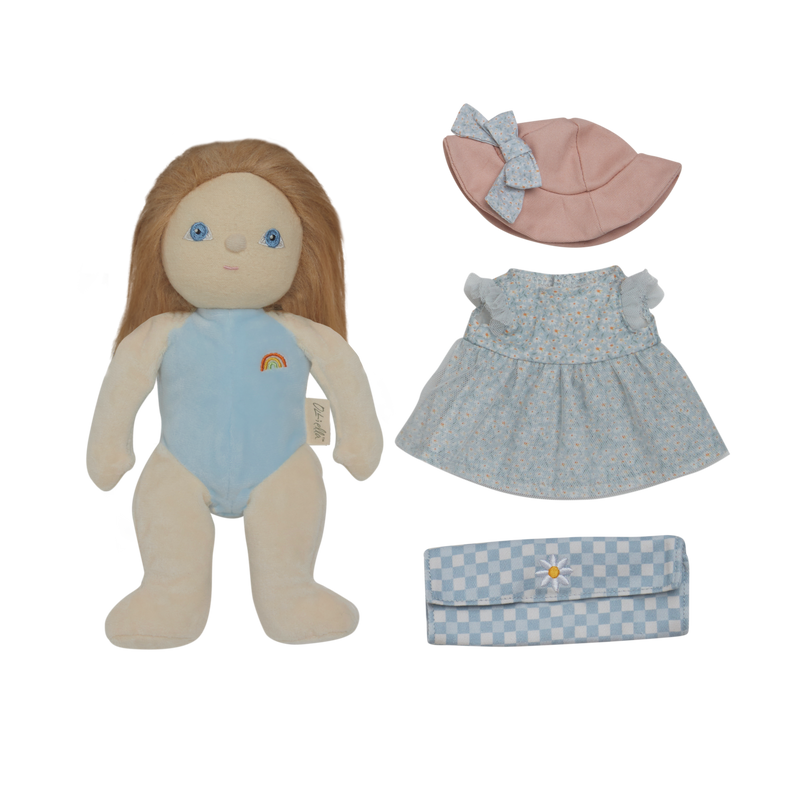 - Penelope Petals, fixed body suit, removable dress, hat, and picnic blanket.
