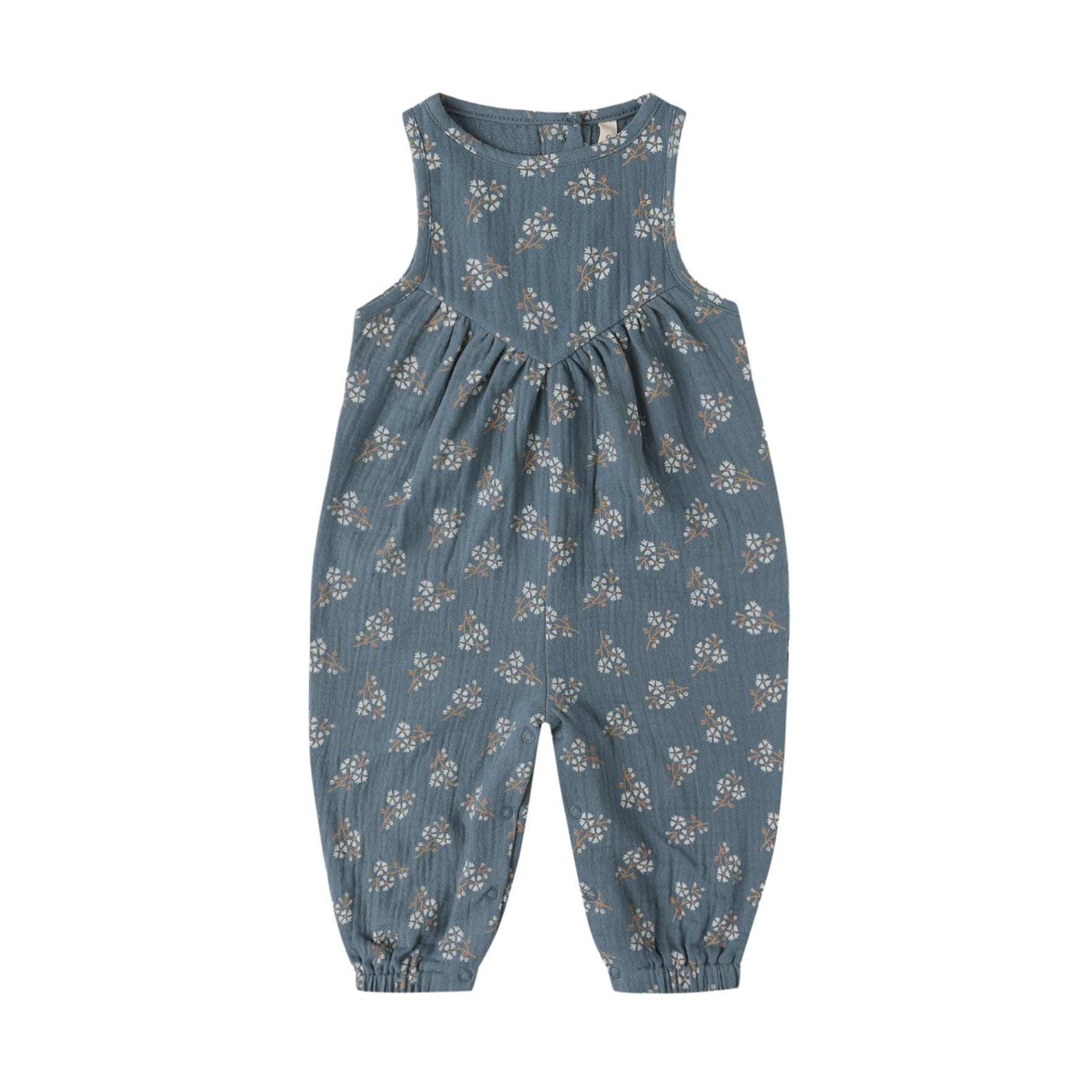 Quincy Mae's Maisie Overall is made from soft, lightweight cotton gauze and features a sweet V-seam at the chest. Finished with a button-down back and hidden snaps along the inseam for easy dressing and changes.