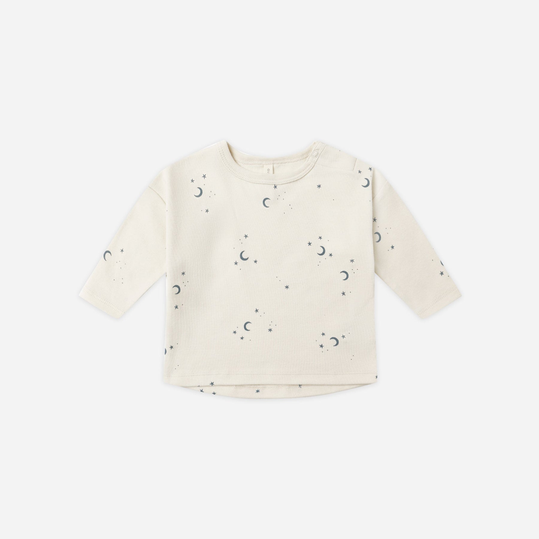 Quincy Mae's Long Sleeve Tee is crafted from soft organic brushed cotton for all-day comfort. Featuring a shoulder snap on sizes 0-3M - 18-24M for easy wear. Pair with Drawstring Pants for a cozy, coordinated look.