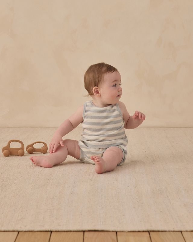 - Featuring Quincy Mae's 'sky stripe' print - a cool stripe for your little rays of sunshine