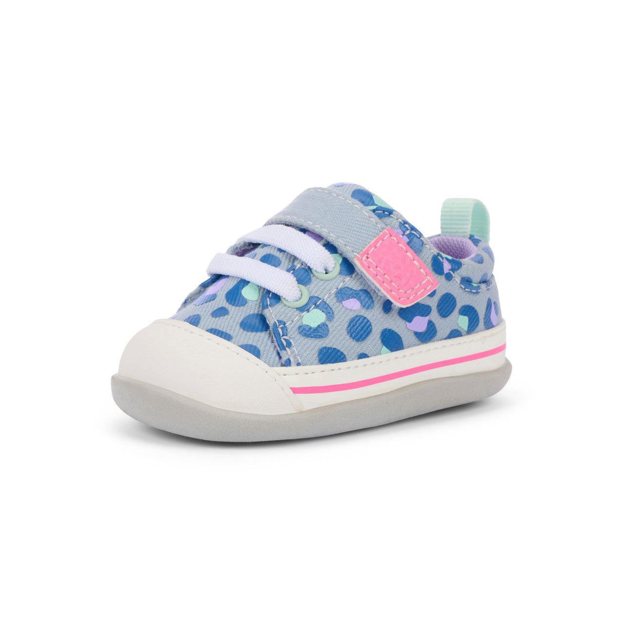 Stevie Mini First Walker Shoe - Sky Blue/Leopard by See Kai Run