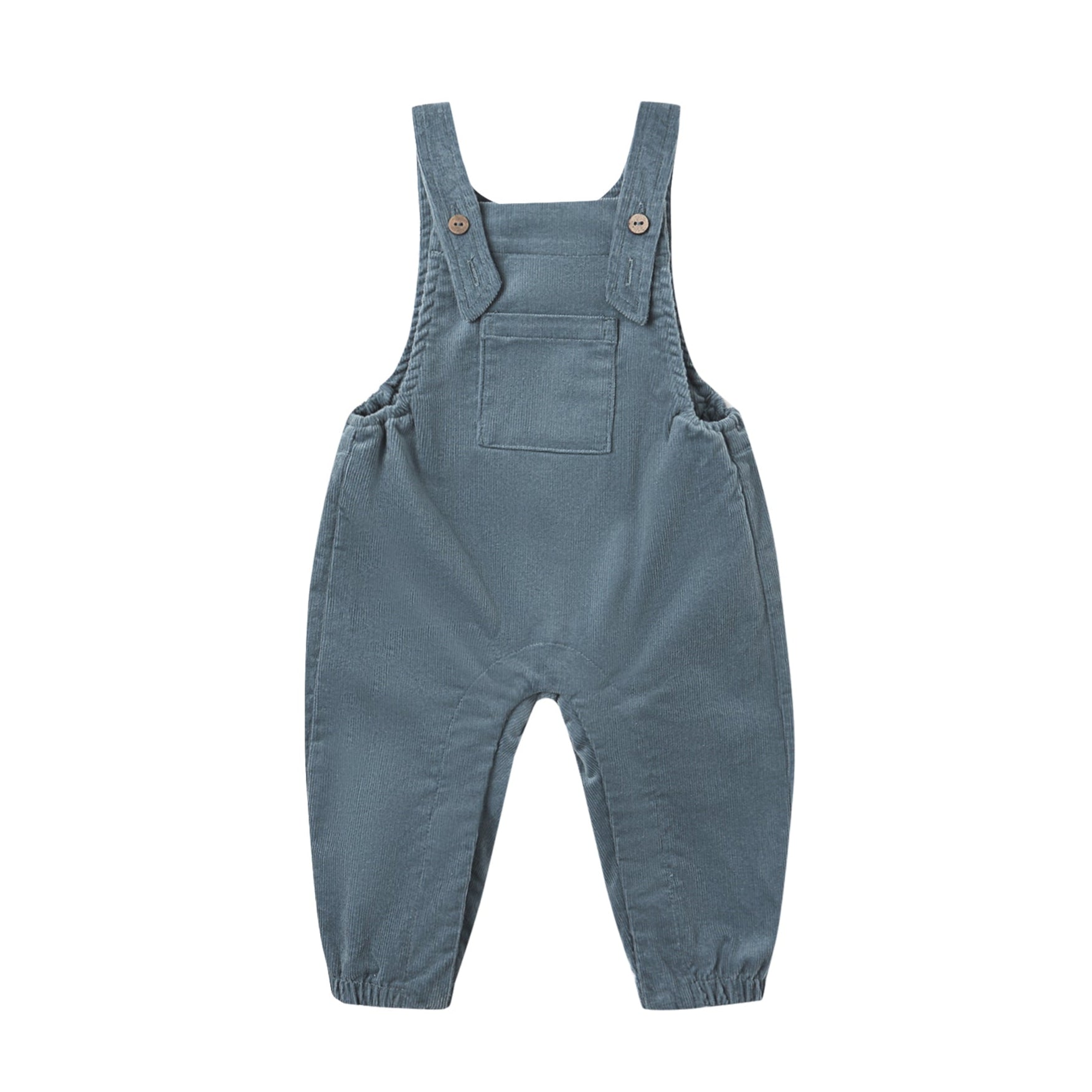 Quincy Mae's Baby Overalls are crafted in soft, cozy corduroy with adjustable straps and coconut button closures. Designed with an open bib pocket, a small back pocket, and elastic leg openings for a comfortable fit. Snaps along the leg inseam on sizes 0-3M - 18-24M make changes quick and easy.