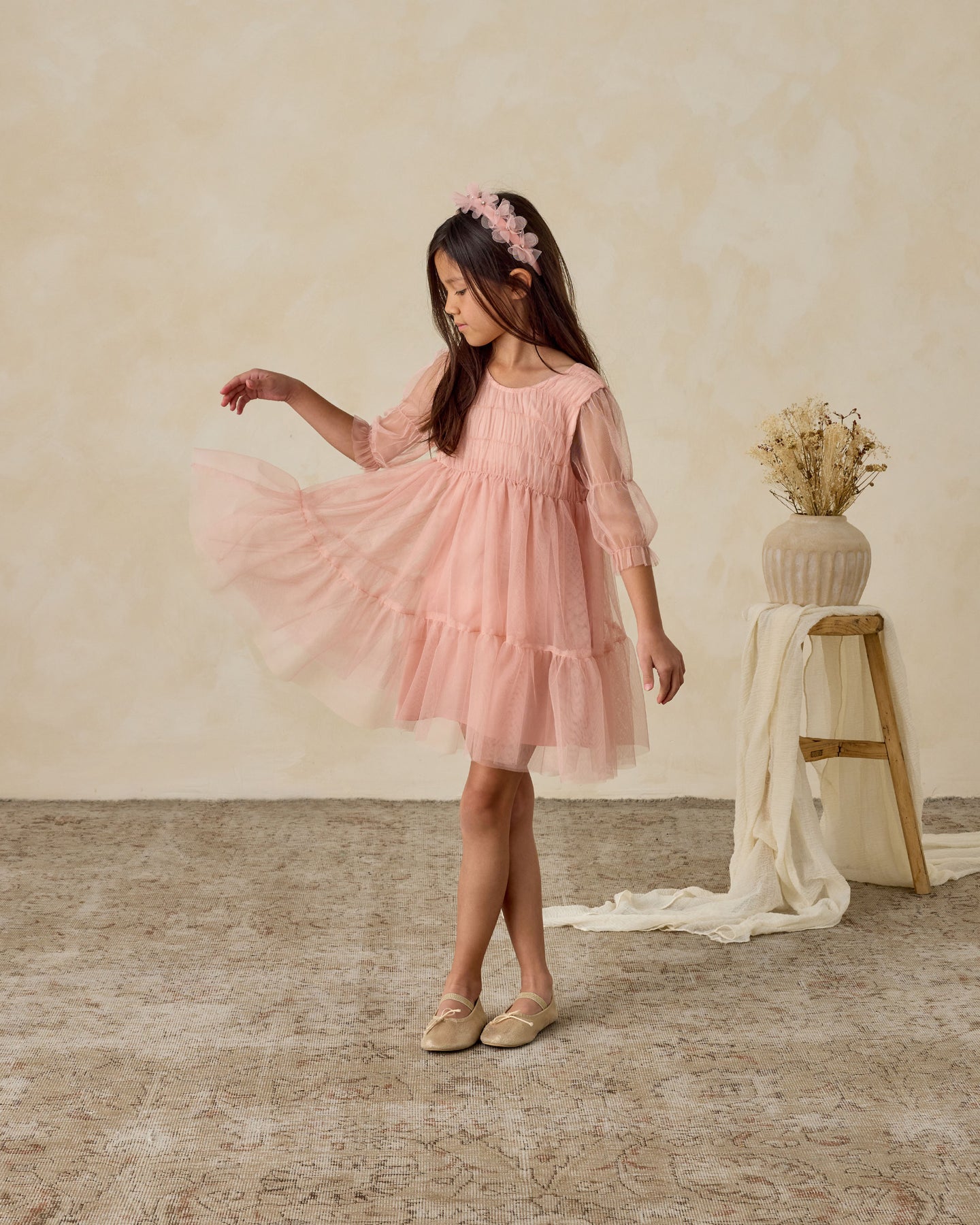 Made for life’s most special moments, the Coralie Dress is full of volume and whimsy, featuring layered tulle for endless twirls. With double puff sleeves, a ruched bodice, and a scooped back with a delicate two-button closure, it’s a dreamy silhouette that’s fully lined in soft viscose for all-day comfort.