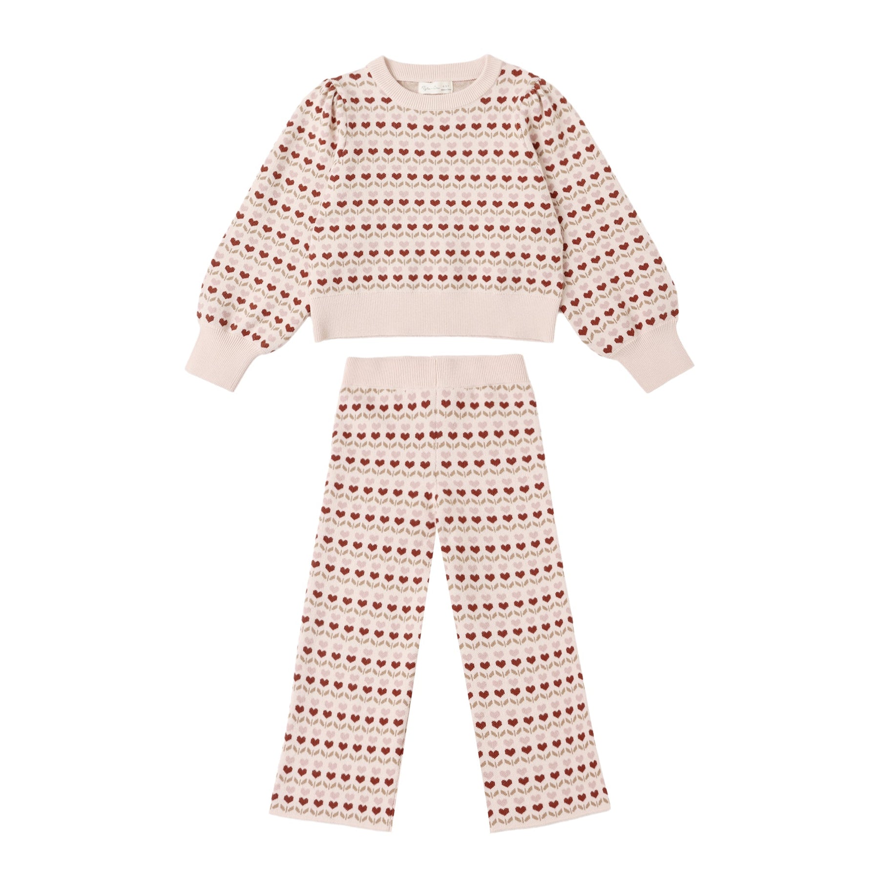 Rylee + Cru's jacquard knit set includes a long sleeve top and cozy pants, perfect for everyday wear for this season!