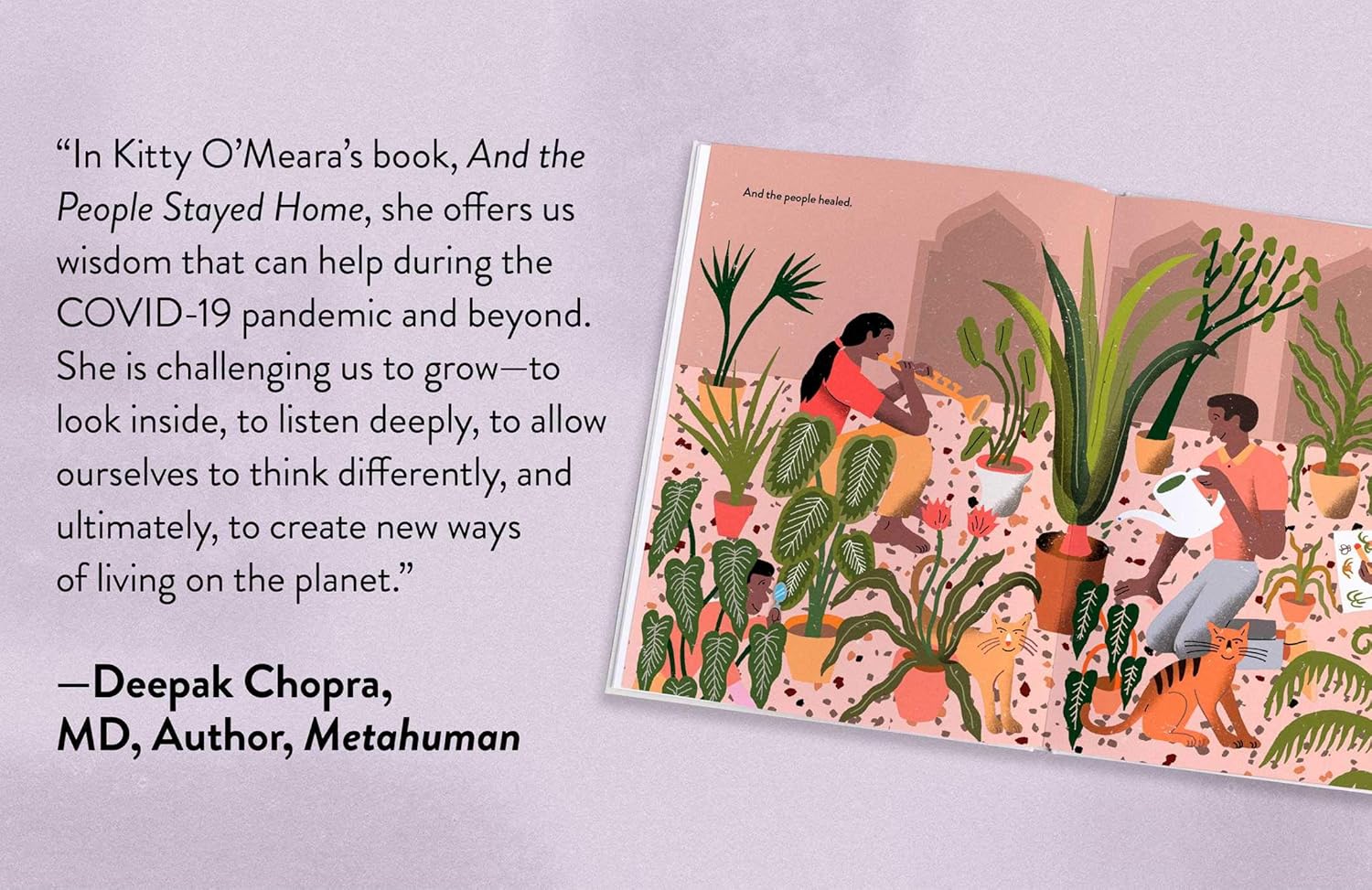 And the People Stayed Home features Kitty O’Meara’s hopeful message about the possibility of profound healing for people and the planet. In these pages the thoughtful words are richly illustrated, and words and images together communicate an optimism for our shared experience and our future that will resonate with readers of all ages.