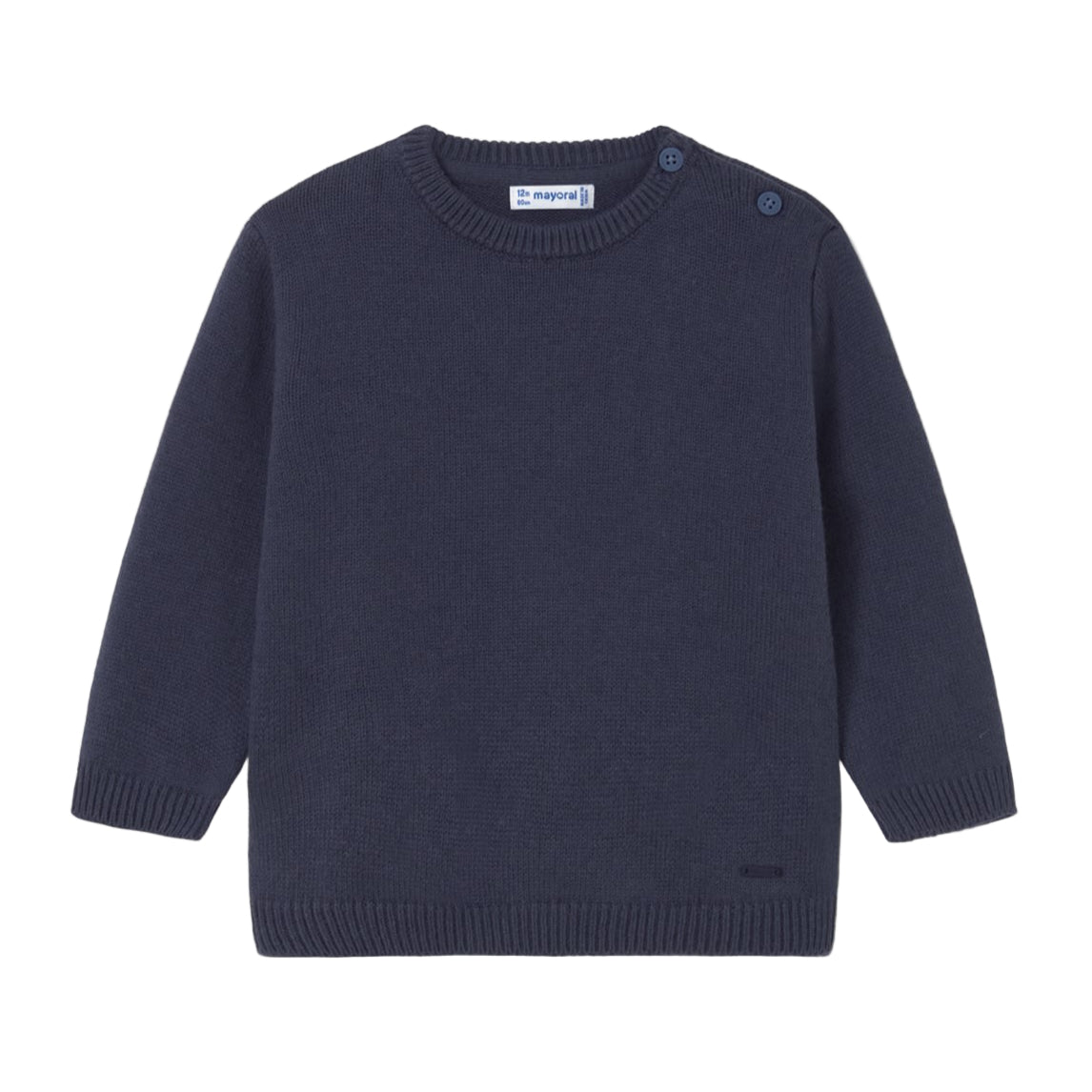 The Mayoral Baby Basic Sweater in Night Blue is a timeless wardrobe essential for your little one. Crafted from soft, breathable cotton, it ensures comfort throughout the day. The elastic-knit hem, cuffs, and neckline provide a snug fit, while the button closure at the back allows for easy dressing. Its classic design makes it versatile for various occasions, from casual outings to special events.