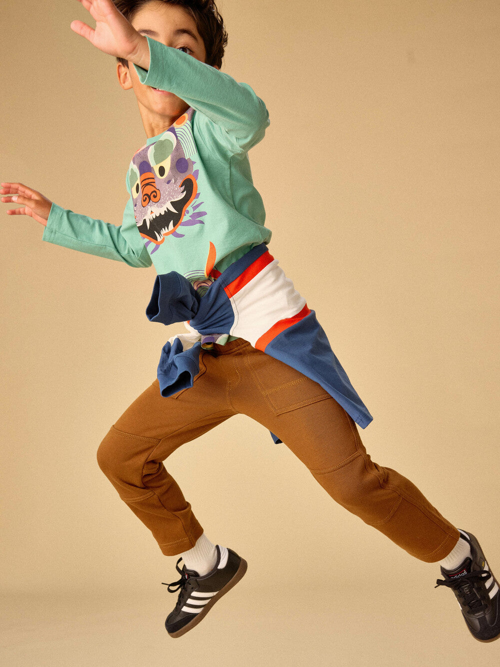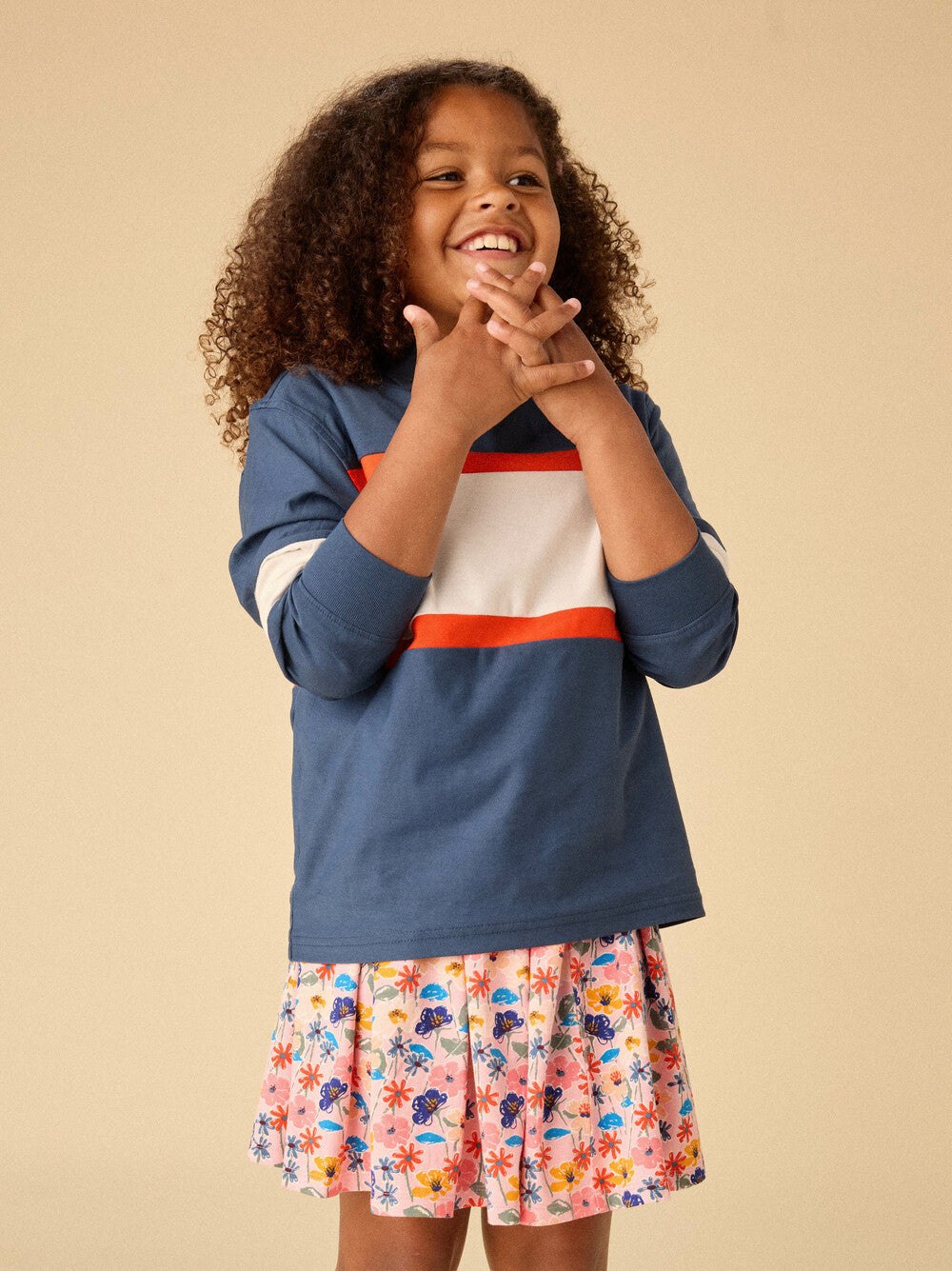 This colorblock rugby tee strikes the perfect balance between bold style and everyday ease. A lighter layer built for all-season versatility, it features vibrant contrast panels that pop, a classic crew neckline, and a chest pocket for tiny treasures. Crafted from 100% cotton jersey, it's soft, breathable, and sturdy enough for recess, reading time, and everything in between. Just the right weight for layering or wearing solo, this top is an easy pick when they're getting dressed in a hurry but still want to look pulled together.