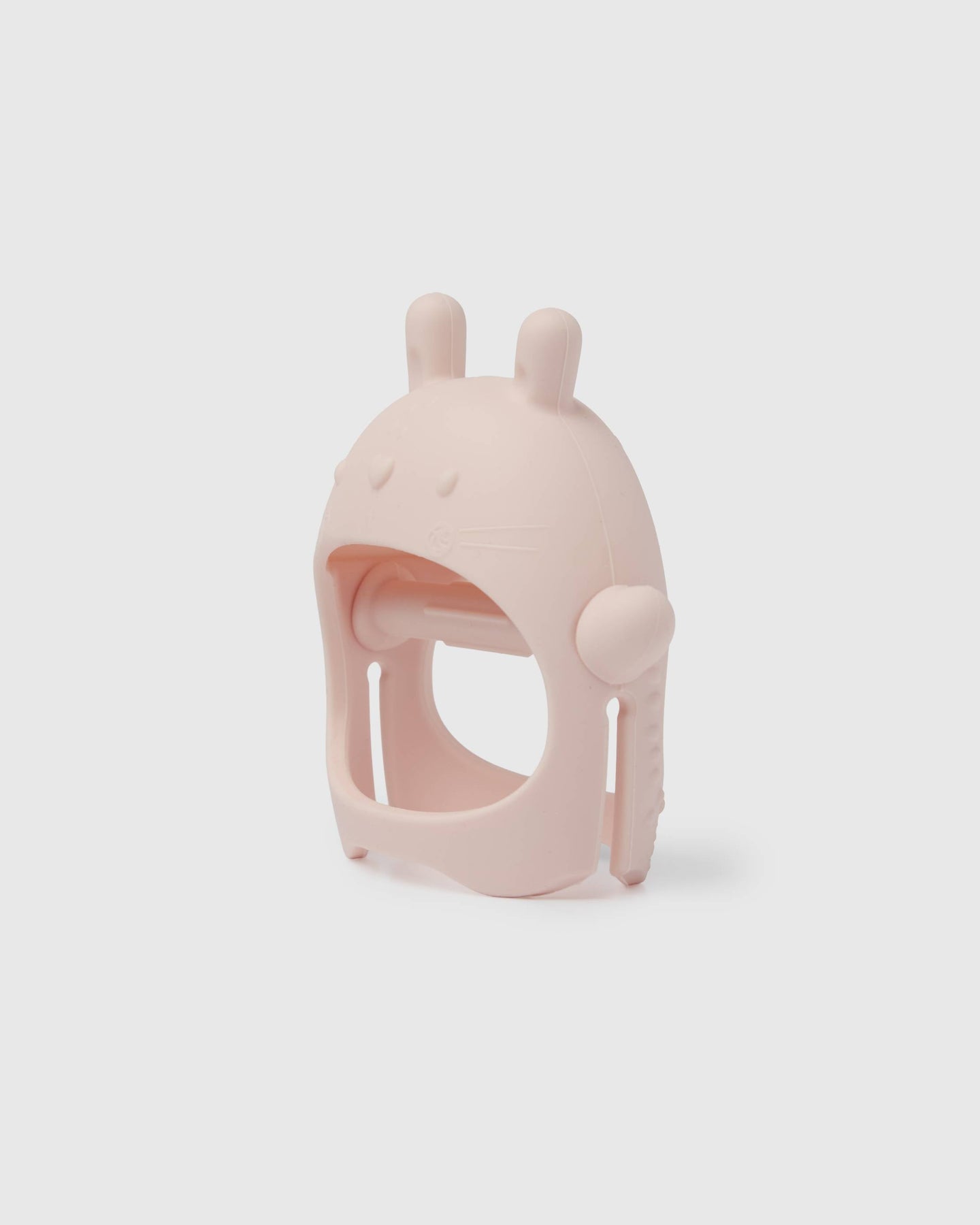 Wear‑and‑chew relief – this cute bunny‑shaped silicone mitt slips onto baby’s hand so little gums can gnaw and explore soft textured surfaces for soothing comfort!