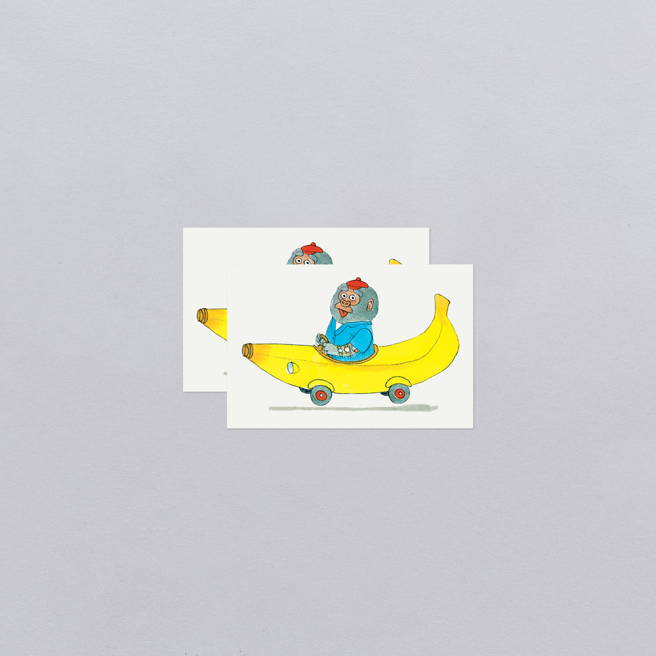 We can see why this Pair of temporary tattoos is really a-peel-ing. This Tattly features a favorite character from Richard Scarry's Busy World—Bananas Gorilla in his banana car. Pick up this Tattly before it splits!