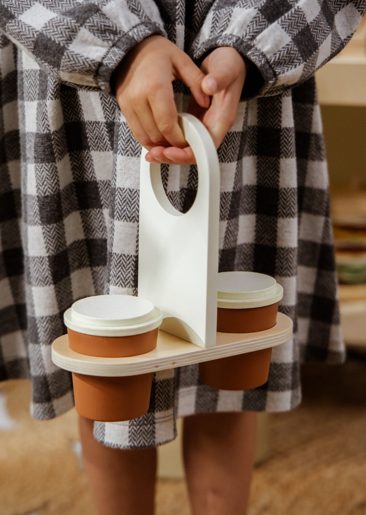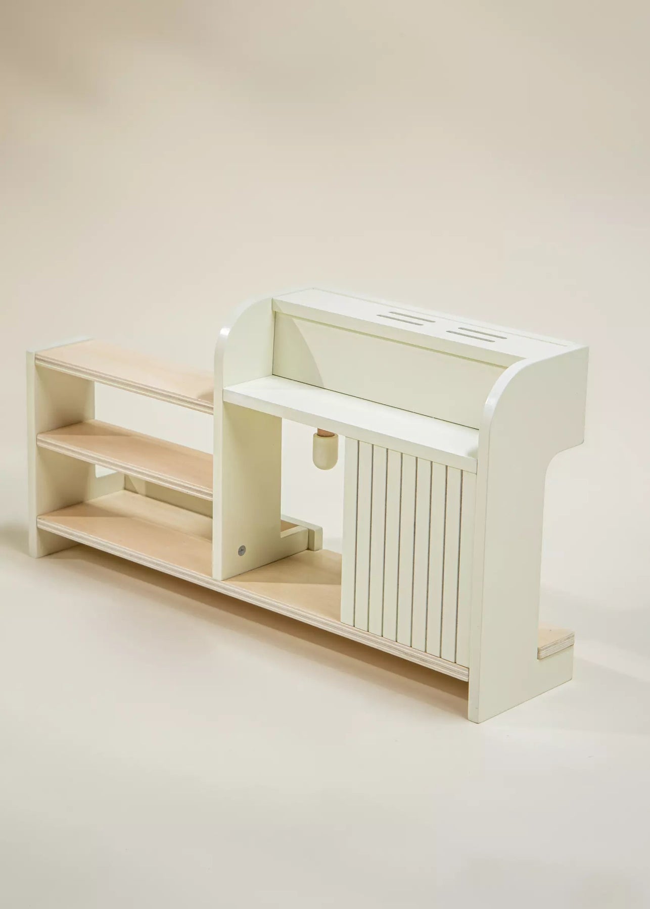 Brew up some fun with the Wooden Coffee Shop Playset! Let your little baristas take orders, whip up imaginary lattes, and serve pretend pastries. This playset is perfect for sparking creativity and social play. Watch as they create the cutest coffee shop in town, filled with endless giggles, realistic looking lattes and delicious imaginary treats.