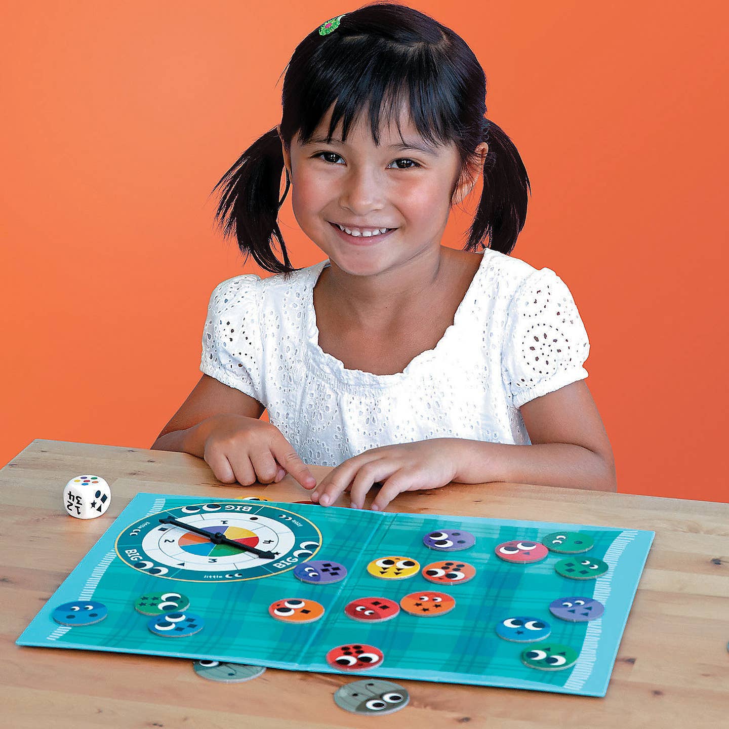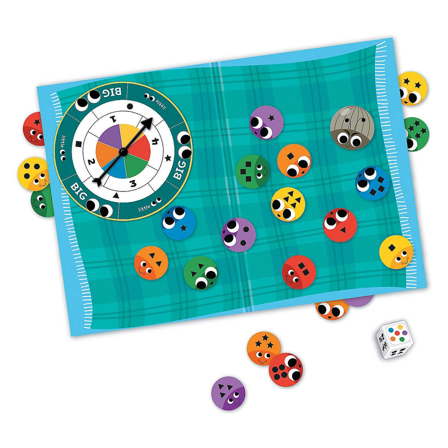 Get all the little colorful bugs under the rug before the three stink bugs stink up the place! Watch closely and make those matches! Spin the spinner and find a matching bug, then slip it under the rug. Take turns spinning and matching and trying to get all the bugs under the rug before three stink bugs get under there. Each level adds more challenge. Work together to find those matches, and you all win!