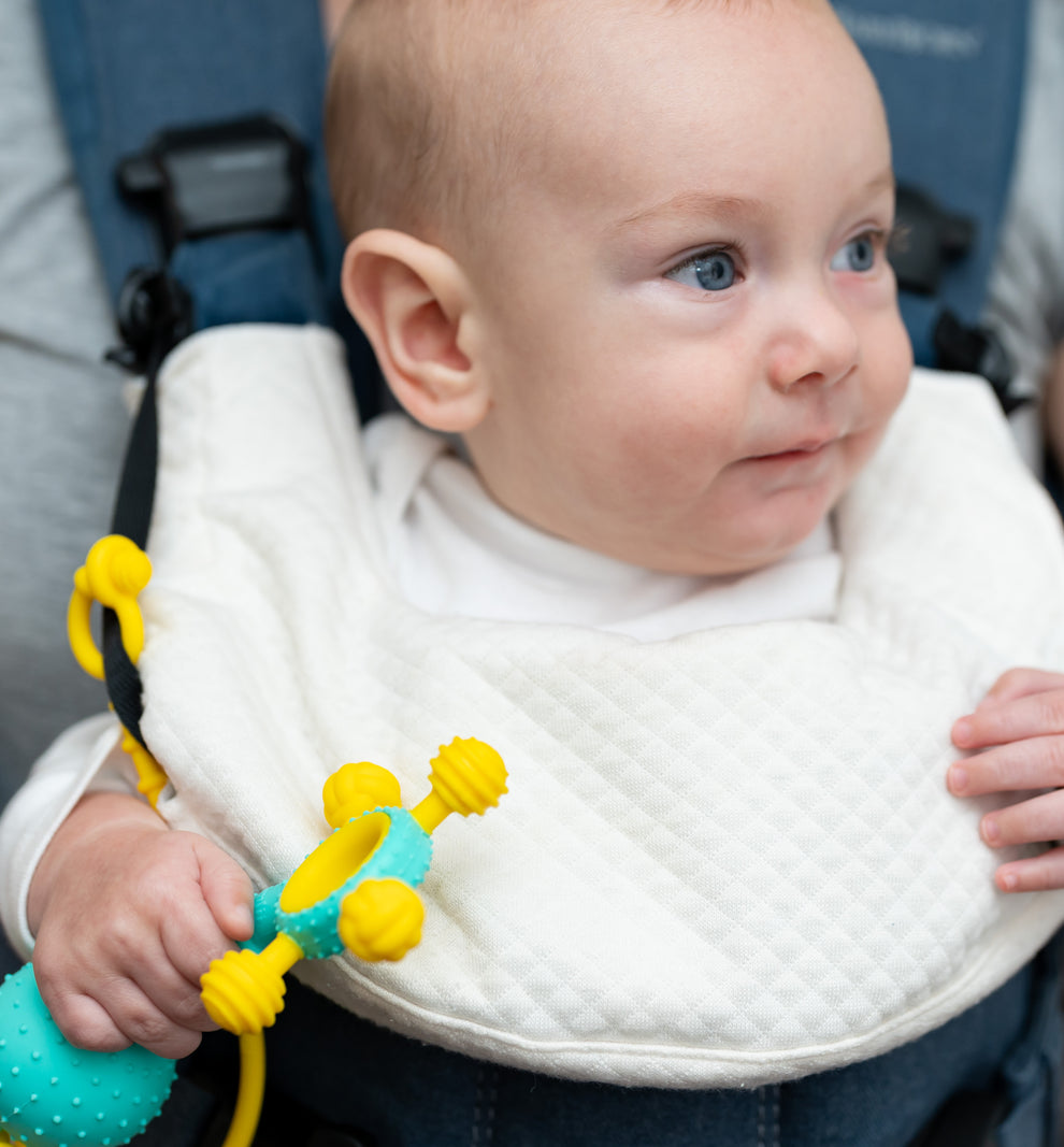 Lightweight, flexible and soft, Gumlii is the perfect teether for your little one. Made out of 100% food grade silicone, Gumlii is safe and non-toxic for your gumming child. Little fingers can't resist Gumlii's textured, chewy nubs, easy-to-hold grip and gentle rattle! Gumlii comes with an attachable tether so that caregivers are able to attach it to a highchair, baby carrier or stroller! Gumlii was developed by a team of doctors, therapists and parents to help children explore, learn and grow!