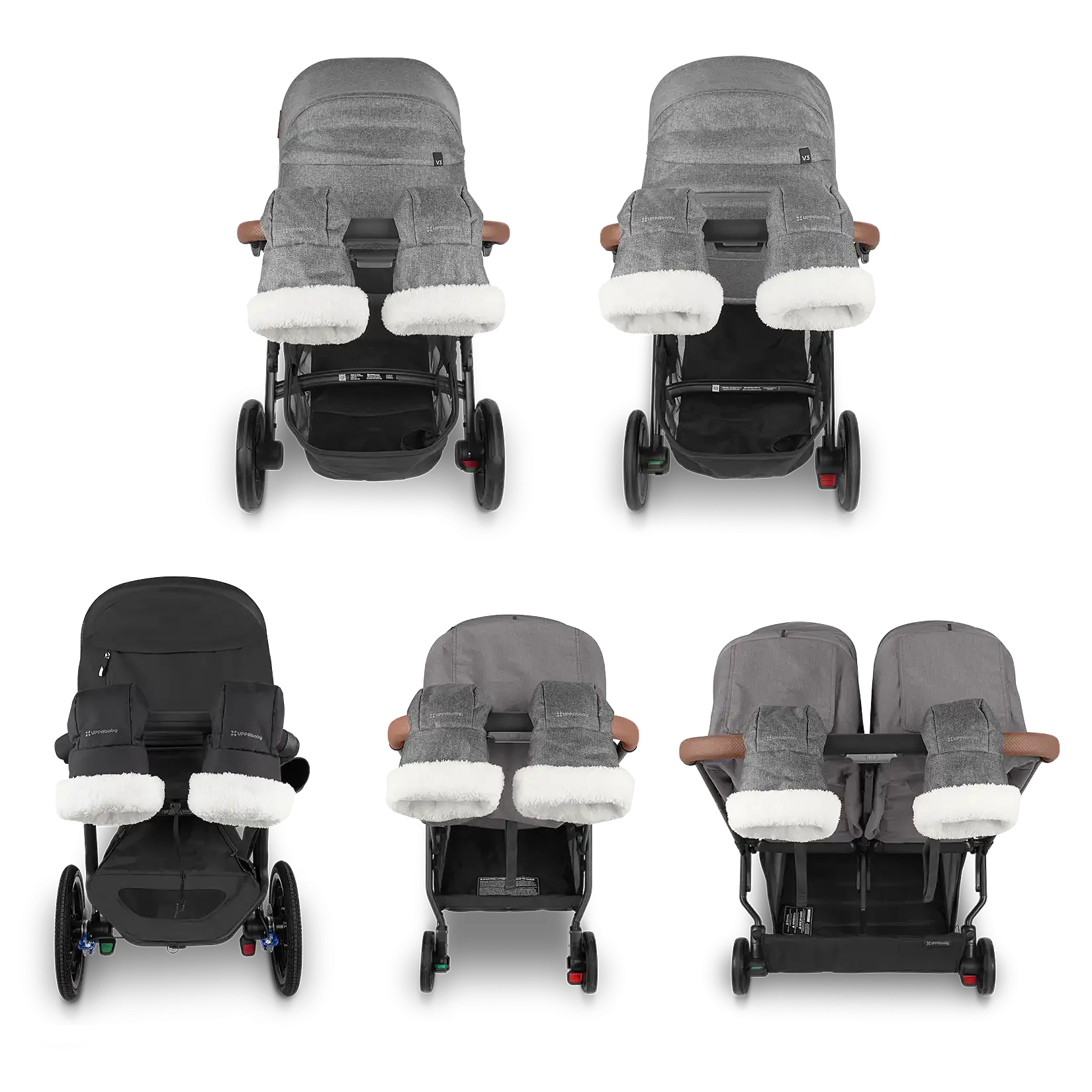 The CozyHandmuffs provide the ultimate protection for your hands while conveniently remaining attached to your stroller handlebar when you need to tend to your little one.