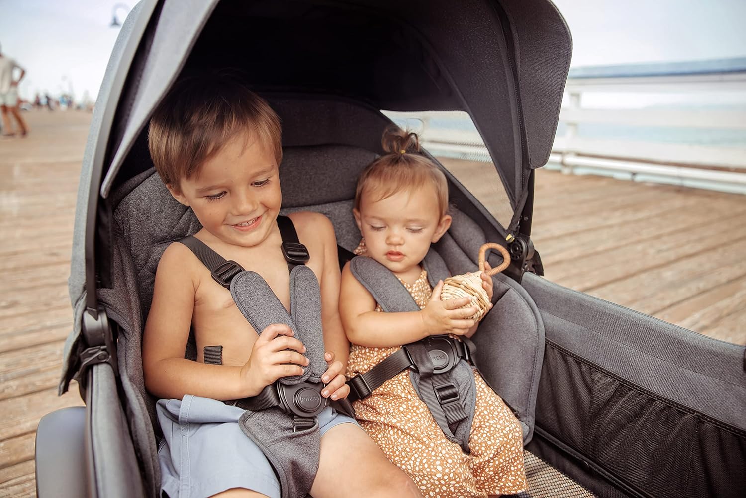 The Comfort Seat is designed with a larger recline angle for more comfort and to be more nap friendly (note however that it does slightly reduce footwell legroom). For safety, for Cruiser 2-seaters, each Comfort Seat includes one 5-point harness and for Cruiser 4-seaters, it includes two 5-point harnesses. Hidden magnets on the side wings ensure an easy, snug fit with the side walls. Two Comfort Seats can be used simultaneously (one on each seat).