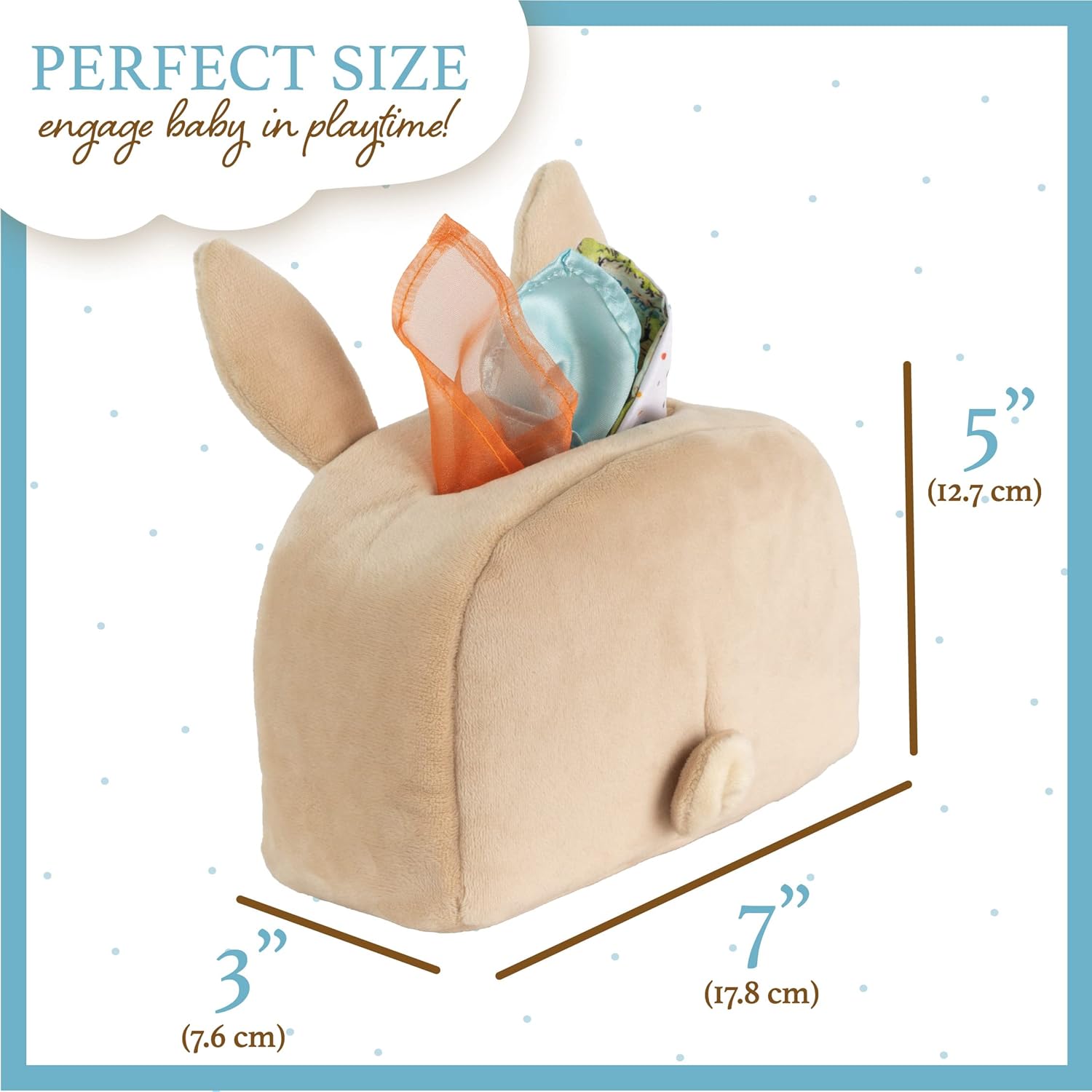 Kids Preferred presents this super cute, charmingly detailed sensory tissue box. Babies, toddlers, and kids love this toy filled with individual sheets of cloth with different textures and depictions of the classic story. This sensory tissue box is comforting and perfect for get well wishes, birthdays and more! It is a huggable travel design for kids on road trips & airplanes, or a cute bedroom decoration.