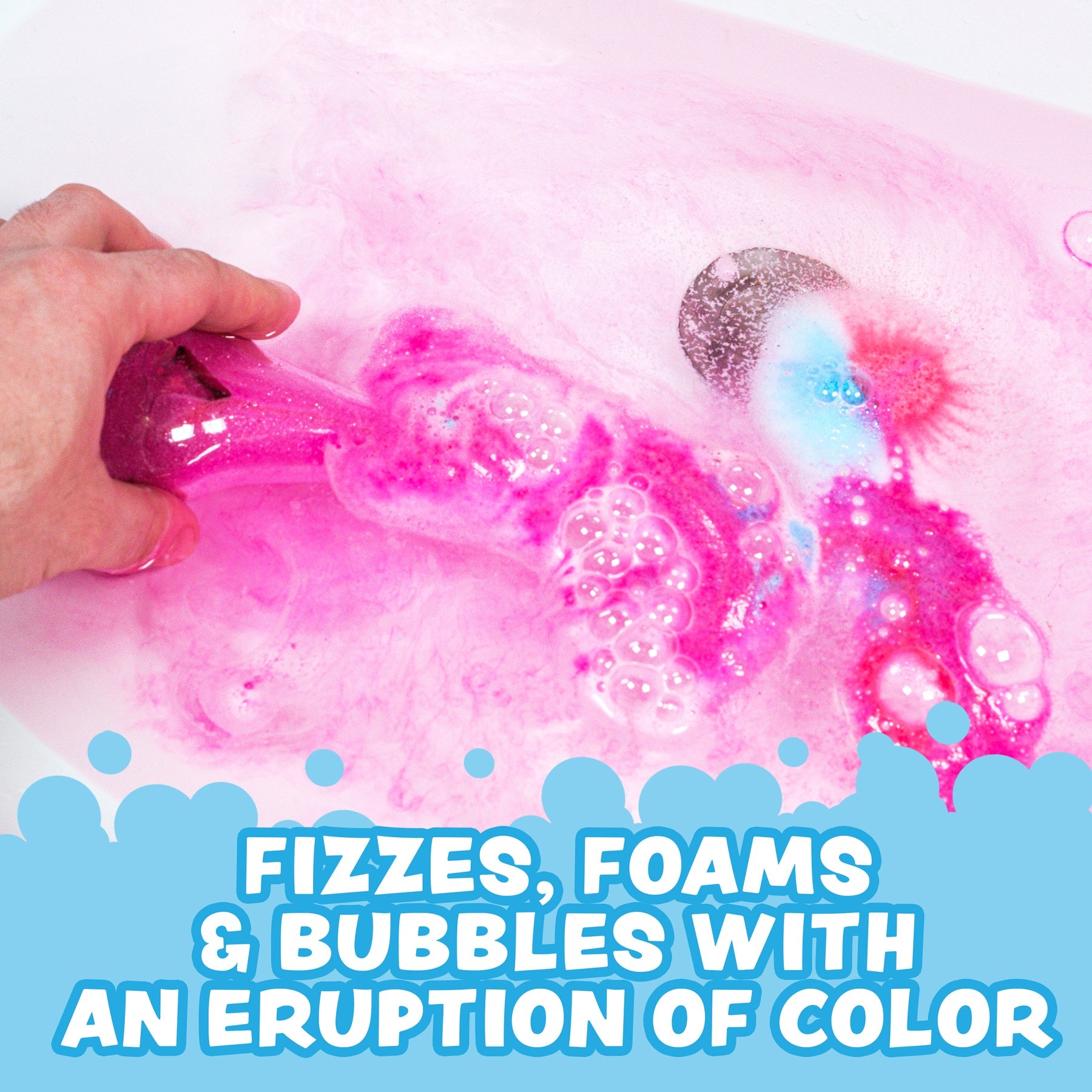 - FIZZY, FOAMY, BUBBLY ERUPTION: Just add water & watch as the kids bath bombs potion fizzes, foams & bubbles! Lil' Scientists will love watching the bubbly eruption of swirling colors they've created!