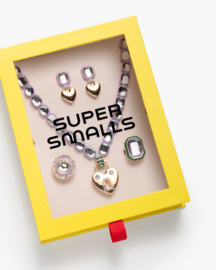 The Lavender Haze Mega Set is a purple lover’s dream, bringing sparkle, style, and a whole lot of fun to your jewelry collection. Featuring a super stretchy gem-studded necklace with a golden heart lock pendant, clip-on earrings with twinkling gems and heart charms, and two adjustable rings for endless styling fun, this set has everything you need to shine. Perfect for dress-up, playtime, or adding a little extra magic to any outfit!