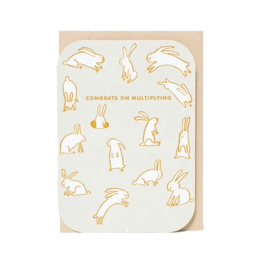 Celebrate the joyous arrival of a new baby with the Baby Rabbits Multiplying Baby Congrats Card by Egg Press. This charming card features an endearing design of multiplying baby rabbits, symbolizing the growing family and adding a playful touch to your congratulatory message.