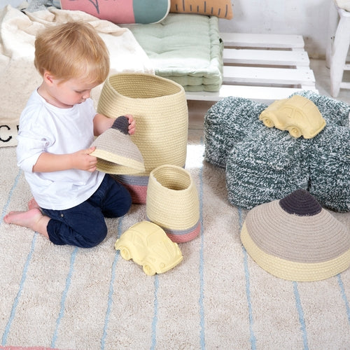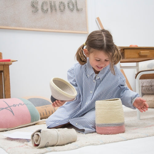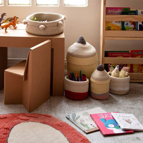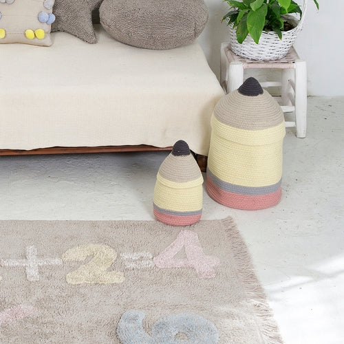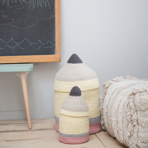 The Pencil Small Basket by Lorena Canals is a beautiful cotton basket woven by hand. This fun pencil design basket has a lid, ideal for avoiding dirt and dust. It is the perfect complement to store colored pencils, toys, and school supplies, leaving everything neat and clean!