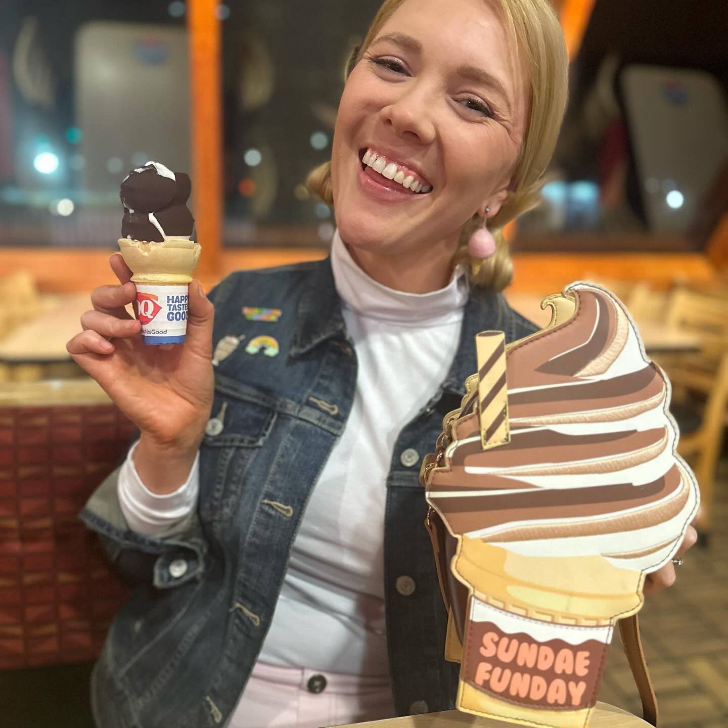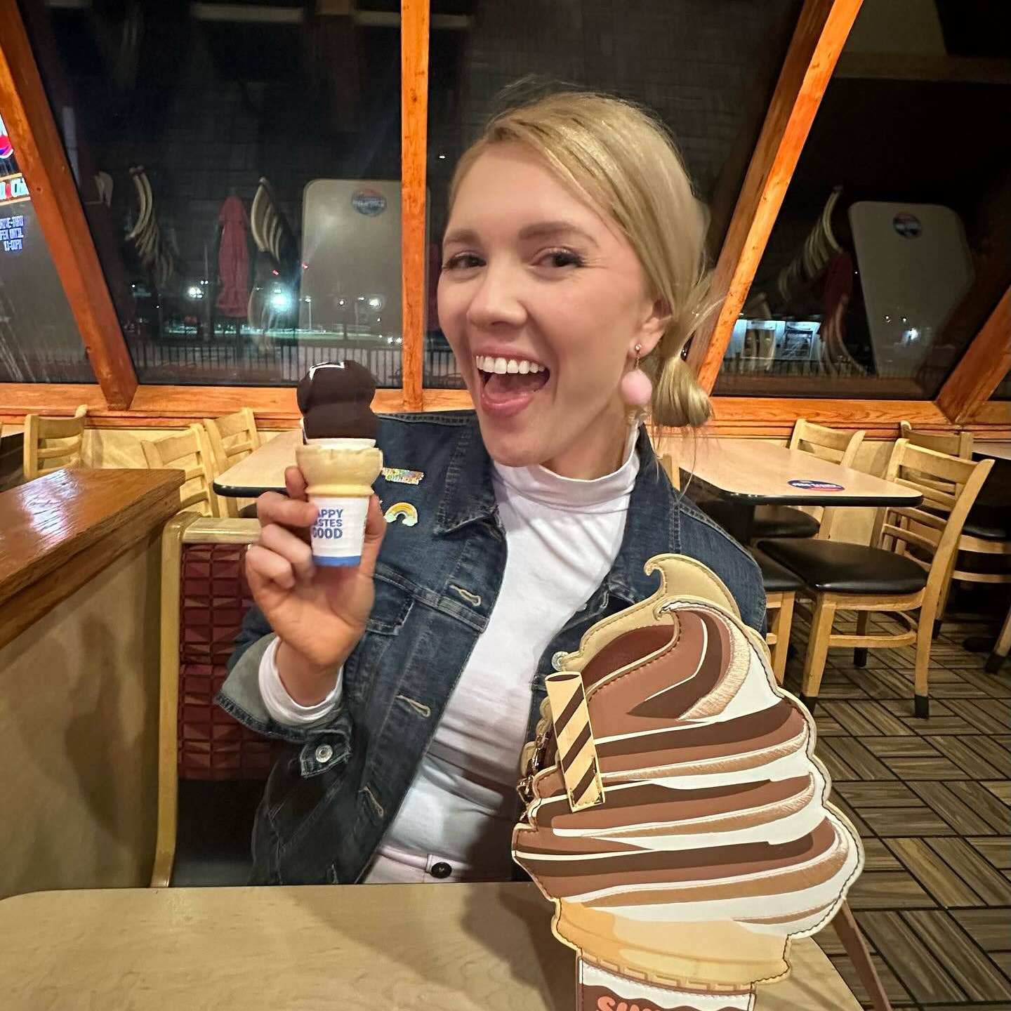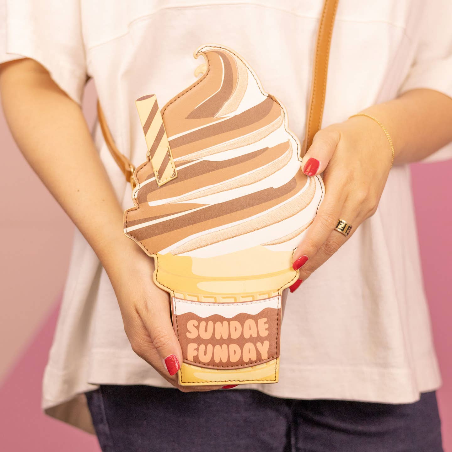 Super fun ice cream cone PU leather shaped novelty purse with adjustable straps!