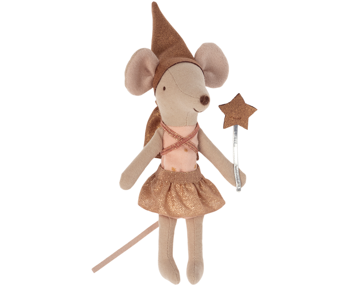 At night the tooth fairy spreads fairy dust, collects baby teeth, brings treats, and always makes sure you have sweet dreams. Dressed magically in a gold tutu with a shiny hat, and a sparkly backpack to store your tooth. Includes a matchbox and a metal tooth box.