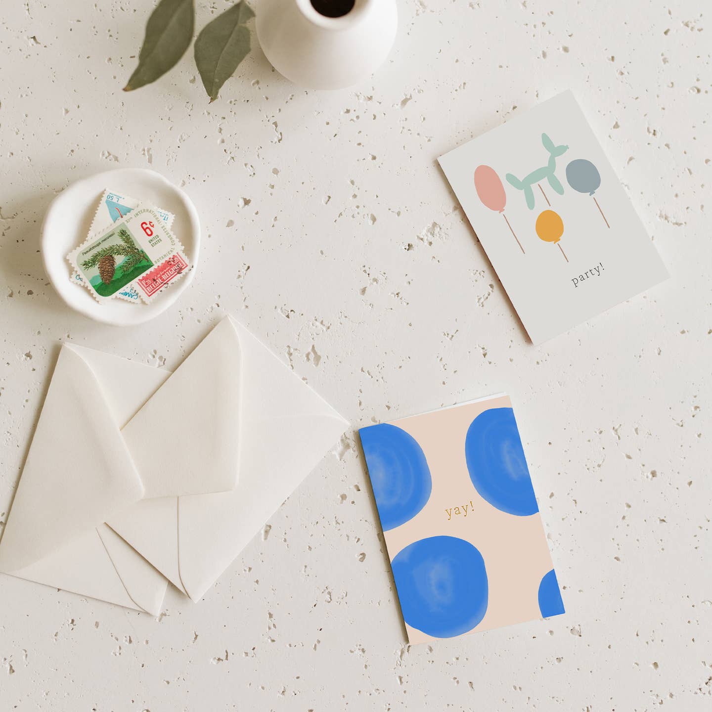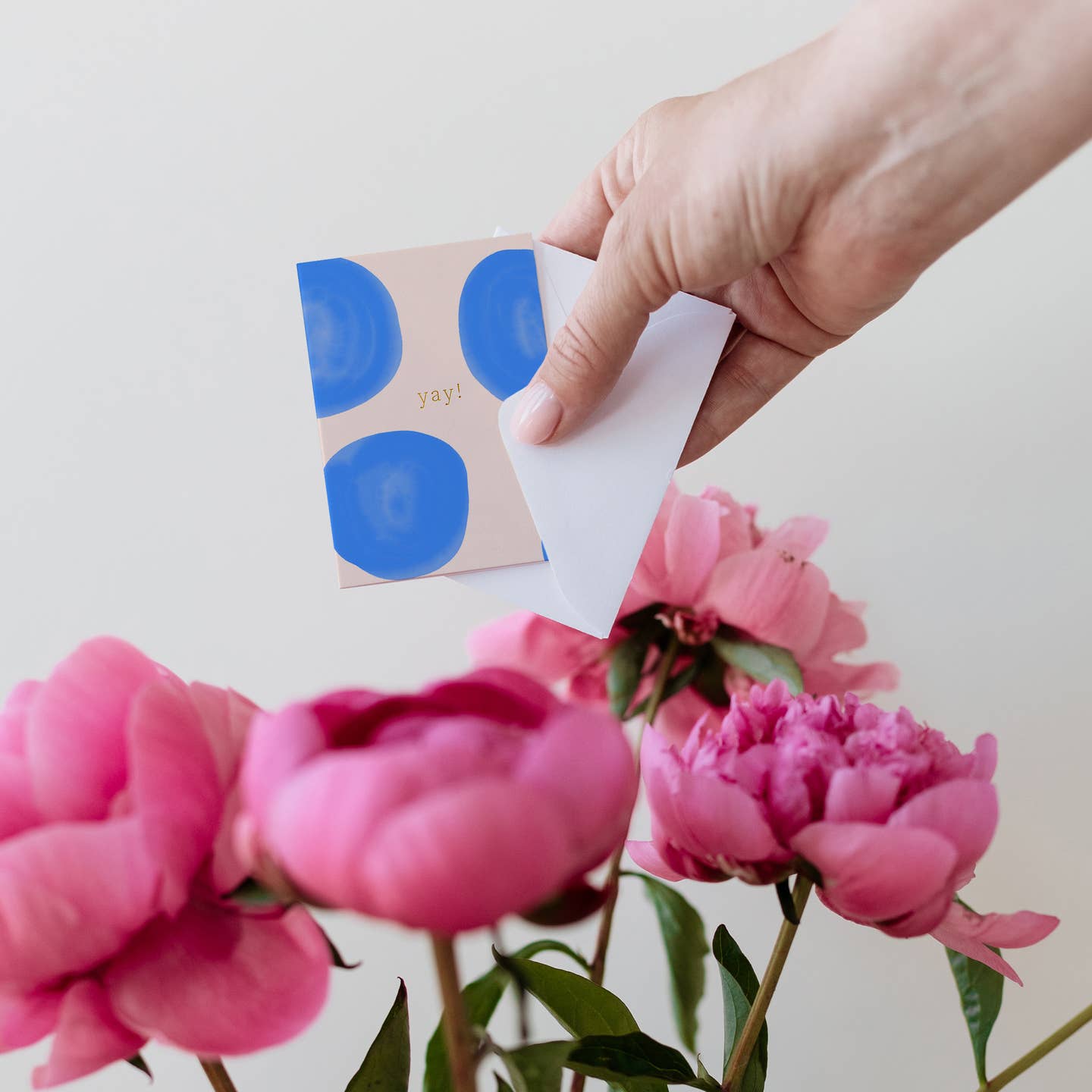 Ramona & Ruth's Yay Dots mini card is a perfect way to add a thoughtful note to a special gift, bouquet of flowers, or even pair with a bottle of wine. At a size so sweet, these mini cards will make a perfect addition to any heartfelt gift or even as a note on its own.
