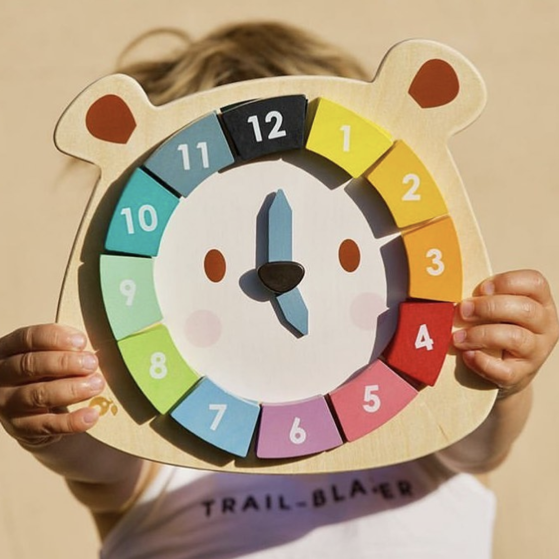 Match up the colors and learn numbers and time with the Tender Leaf Toys Bear Colors Clock! A great eco-friendly toy that is a matching and learning toy in one. It can be hung up on a wall with a small bracket on the reverse.