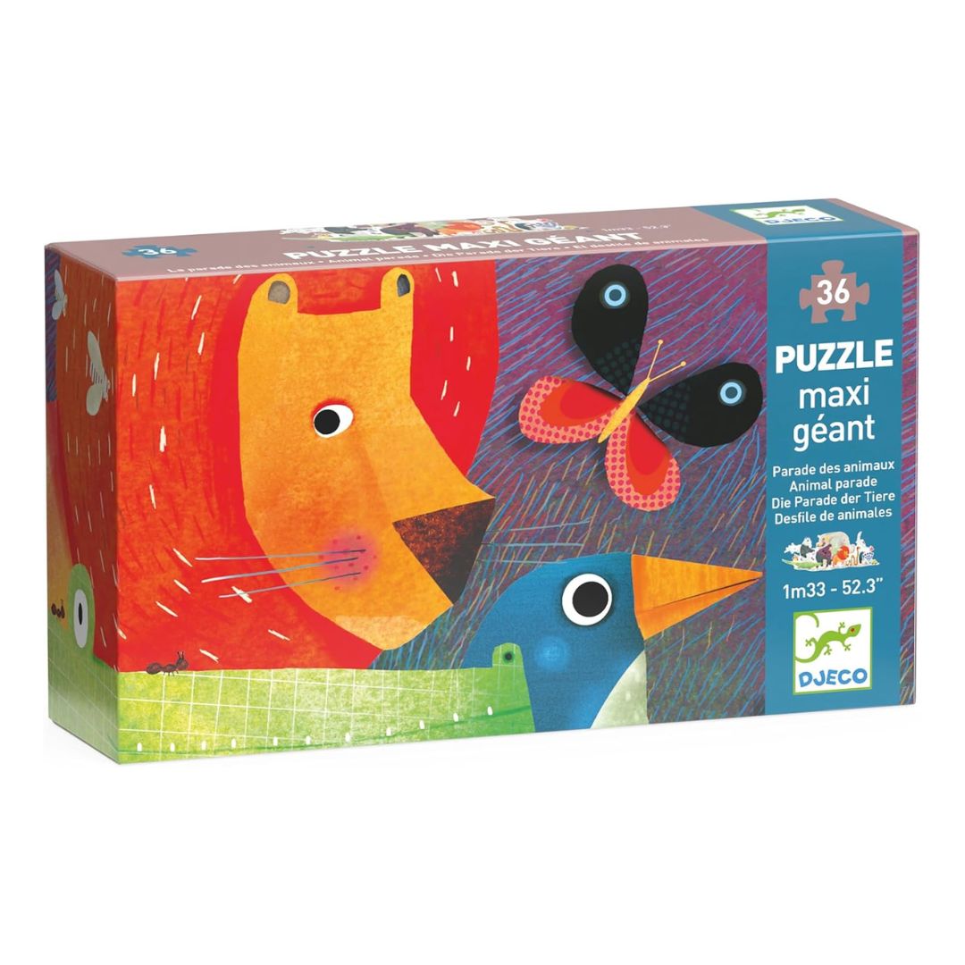 Djeco's Animal Parade Puzzle is a beautifully illustrated piece by Charlotte Labaronne. It features the denizens of the jungle out for a fun parade. Can you spot them all? This puzzle is made up of 36 large cardboard puzzle pieces, perfect for sharing among smaller hands. When completed, it measures a whopping 1.33 meters in length!