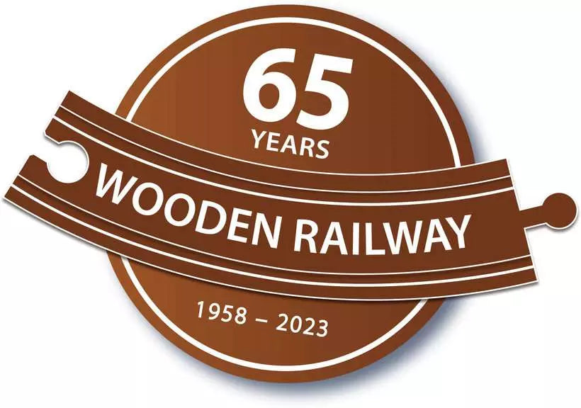 36036 65th Anniversary Train Set includes 32 pieces; 1x Wooden Engine, 3x Wagons, 3x Wooden Loads, 2x Wooden Trees, 23x Wooden Tracks, Switches and Supports.