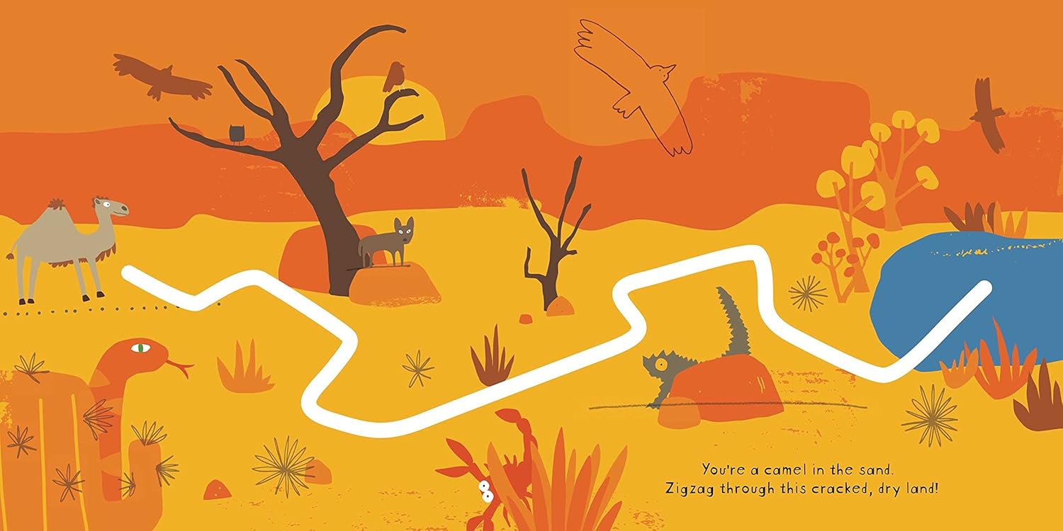 Use your finger to help different creatures find their special trail around the world! This interactive board book lets little ones explore world by tracing a tactile pathway. Each spread will feature a different animal looking for its way through a different landscape, from a thick, green forest to a dry, orange desert.