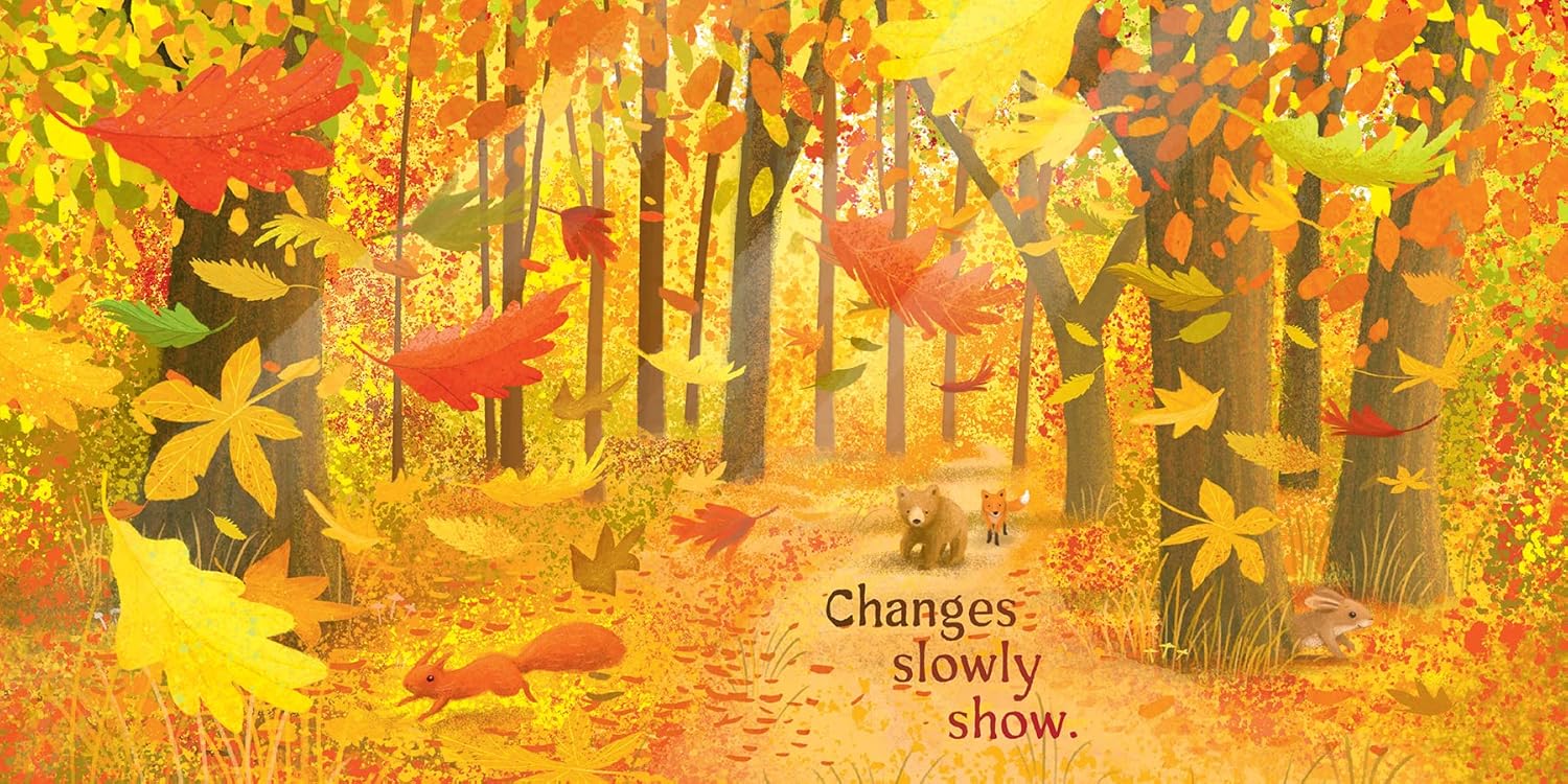Fuzzy squirrels, sly foxes, and little bunnies romp through the forest as the trees' leaves change from summery greens to amber fall colors and finally to the bare branches of early winter.