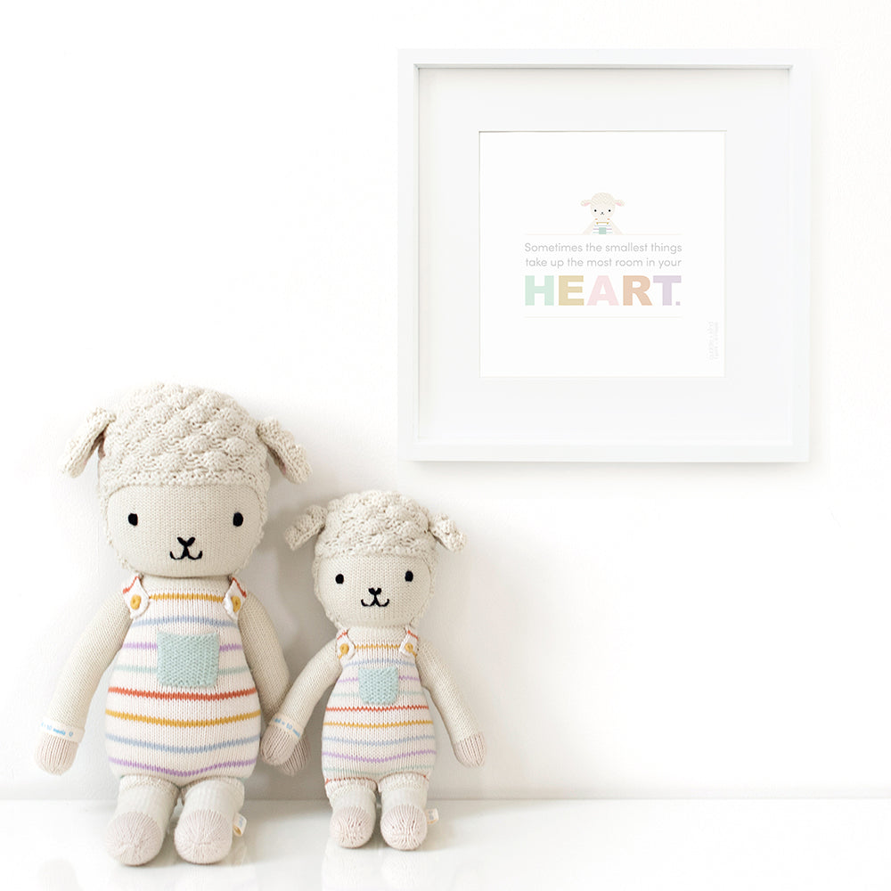 An enchanting handcrafted doll designed to inspire love and kindness in children. Made with high-quality, soft materials, it's perfect for snuggles, playtime, or as a decorative piece in your child's room. Each purchase helps provide meals to children in need, making this adorable lamb is not just a toy, but a way to make a positive impact. With her charming design and heartwarming story, Avery the Lamb is sure to become a beloved companion for your little one.