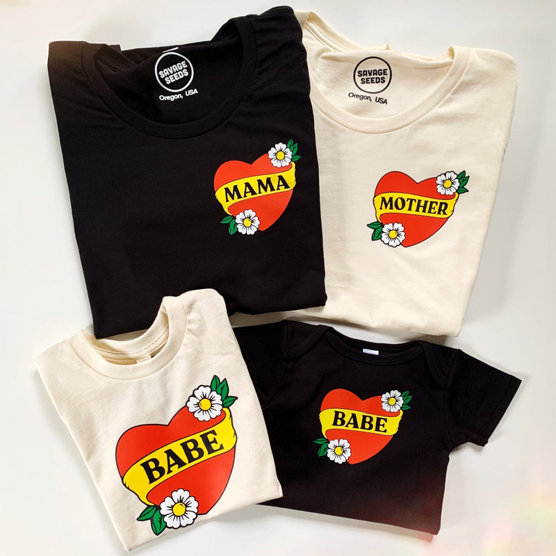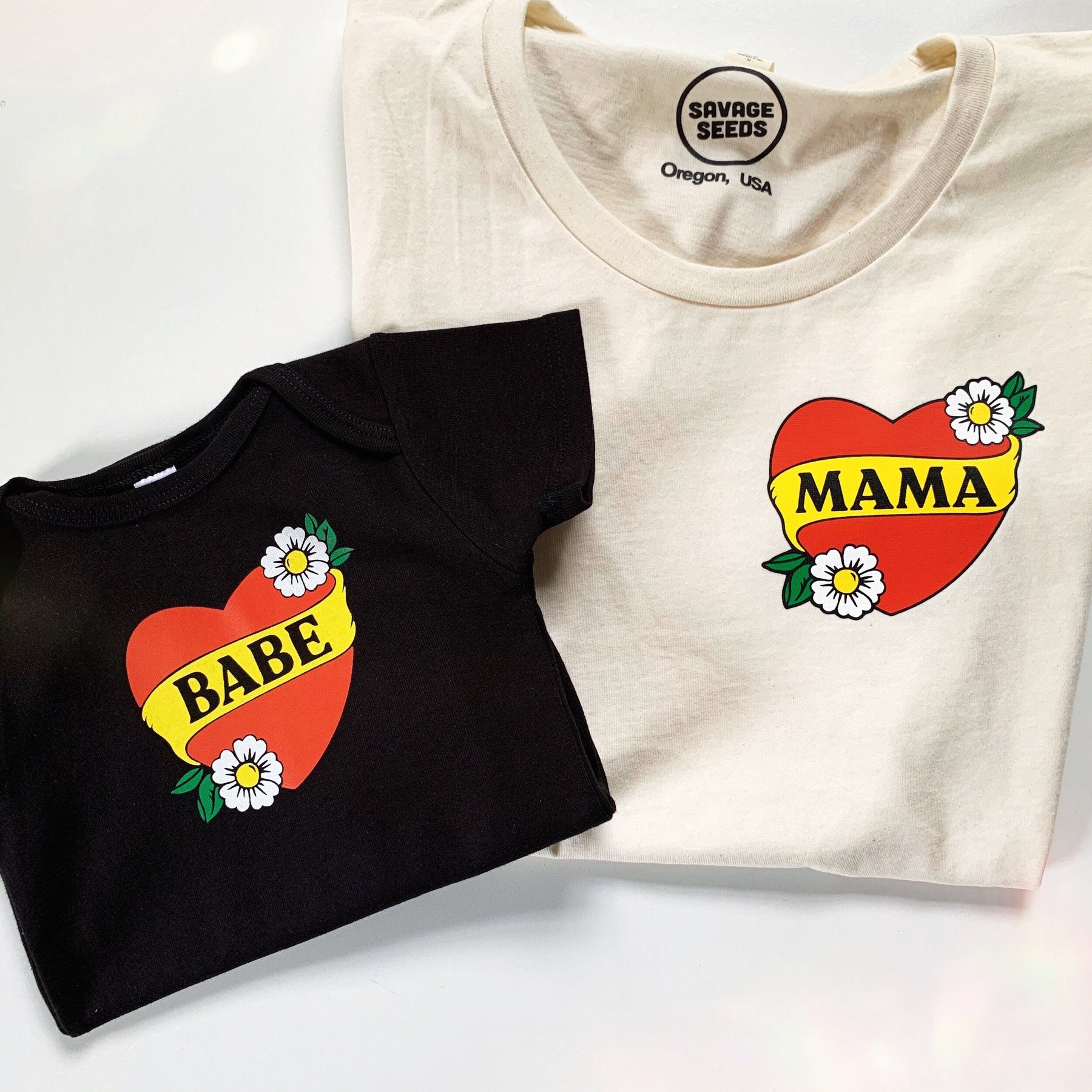 Sweet Sentiment – the crisp “Babe” print is cute on its own or matches mama’s style—ideal for adorable photo ops.