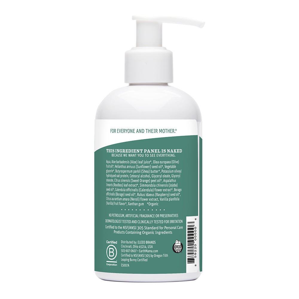 • Aqua, Aloe barbadensis (Aloe) leaf juice*, Olea europaea (Olive) fruit oil*, Helianthus annuus (Sunflower) seed oil*, Vegetable glycerin*, Butyrospermum parkii (Shea) butter*, Potassium olivoyl hydrolyzed oat protein, Cetearyl alcohol, Glyceryl oleate, Glyceryl stearate, Citrus sinensis (Sweet Orange) peel oil*, Aspalathus linearis (Rooibos) leaf extract*, Simmondsia chinensis (Jojoba) seed oil*, Calendula officinalis (Calendula) flower extract*, Borago officinalis (Borage) seed oil*, Rubus idaeus (Raspberry) seed oil*, Citrus aurantium amara (Neroli) flower extract, Vanilla planifolia (Vanilla) fruit flavor*, Xanthan gum *Organic