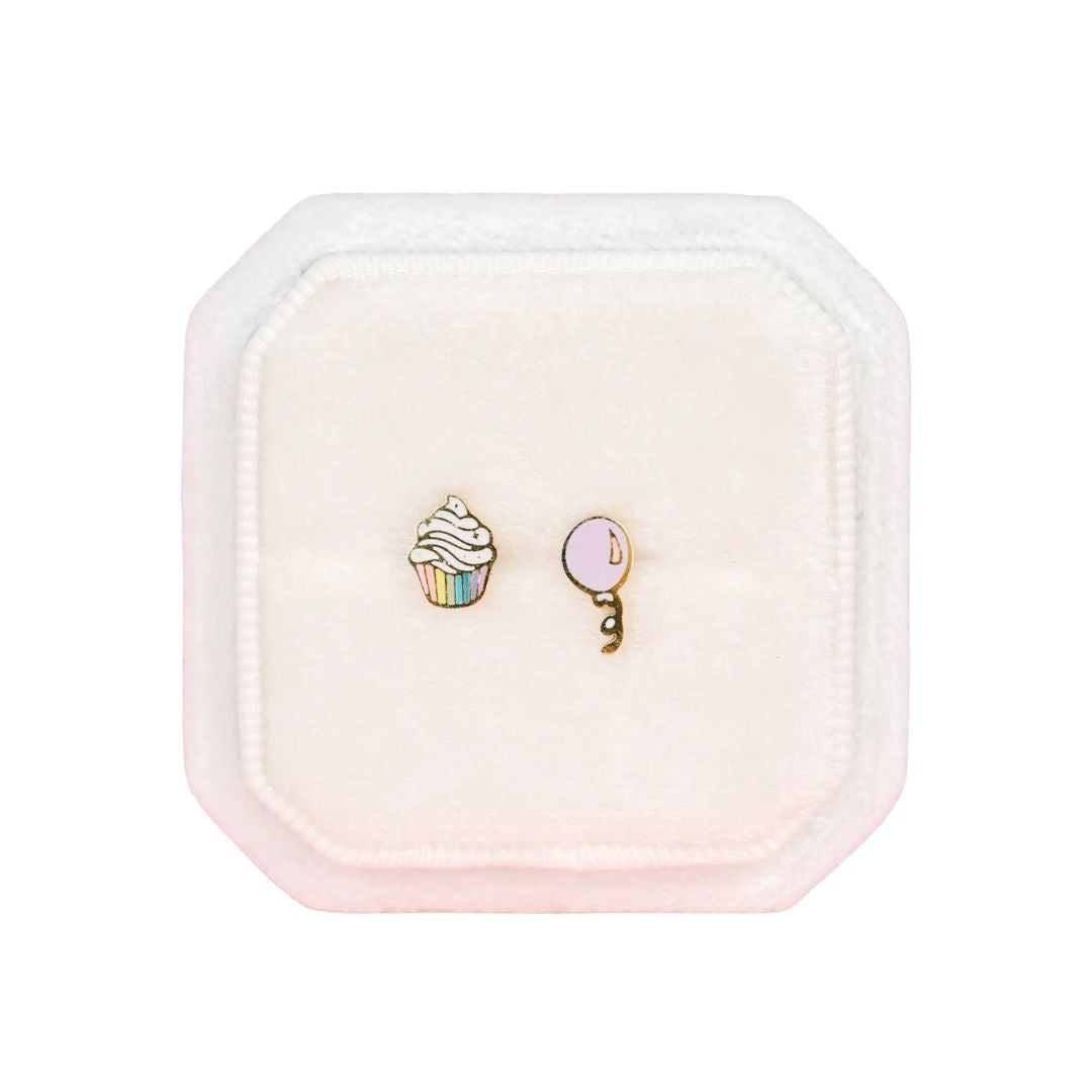 The Pierced Birthday Party! Earrings are high-quality earrings made for girls with sensitive ears and to join them on their everyday adventures. Hypoallergenic, these stud earrings are the best earrings for all ages, baby, toddler, kid, teen and adult. The flat back design ensures they will be comfortable and safe, while its waterproof and tarnish-resistant metals promise enduring quality.